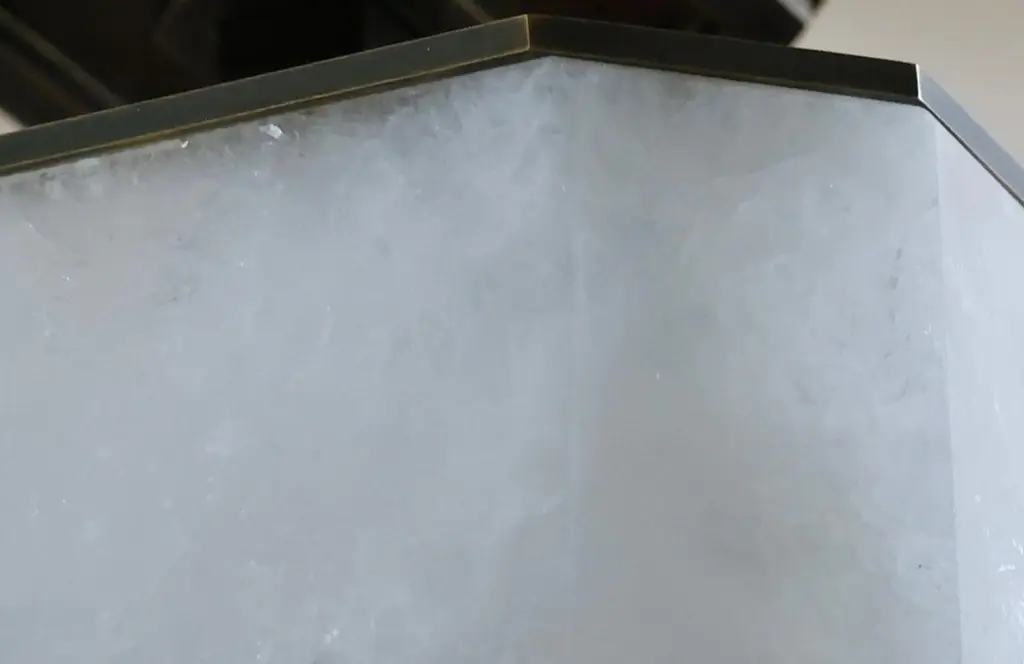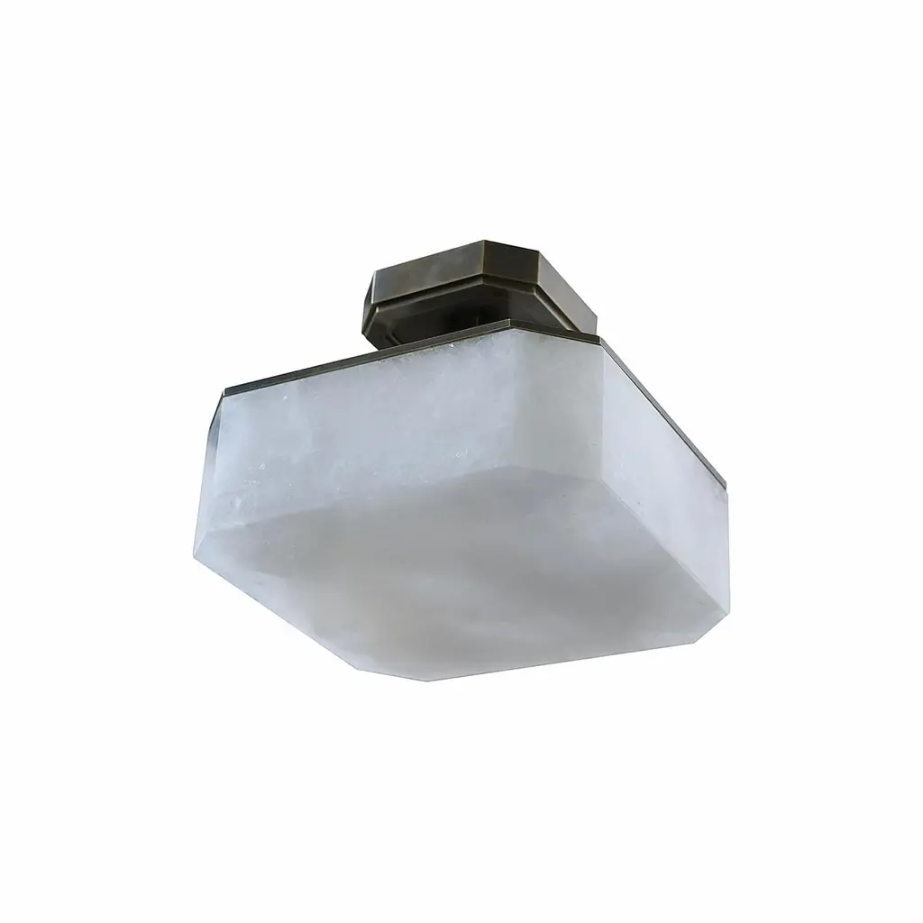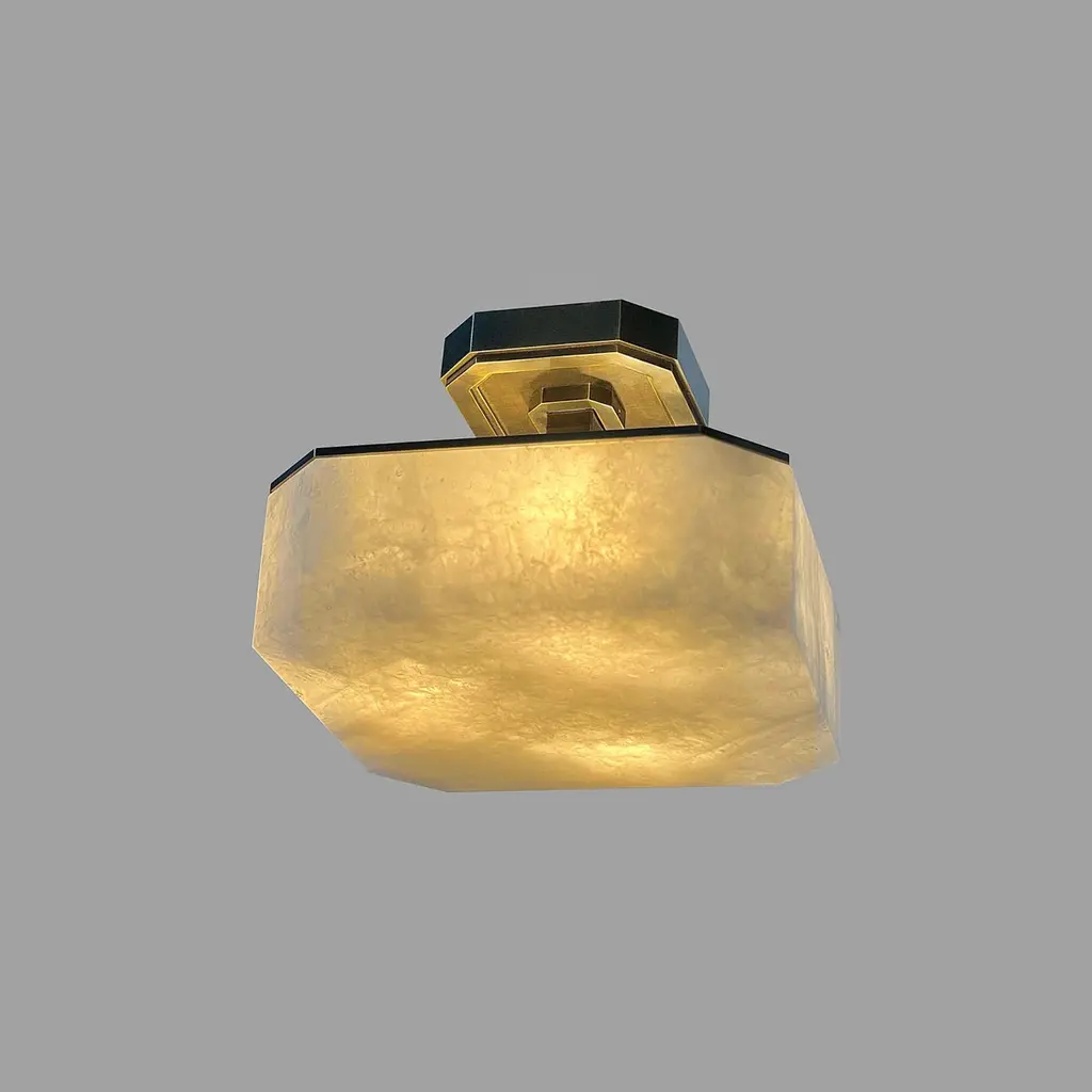 Carved octagonal form rock Crystal semi flush mount,created by Phoenix Aged brass finish Three E12 socket installed,180w total Custom size and metal finish upon request
