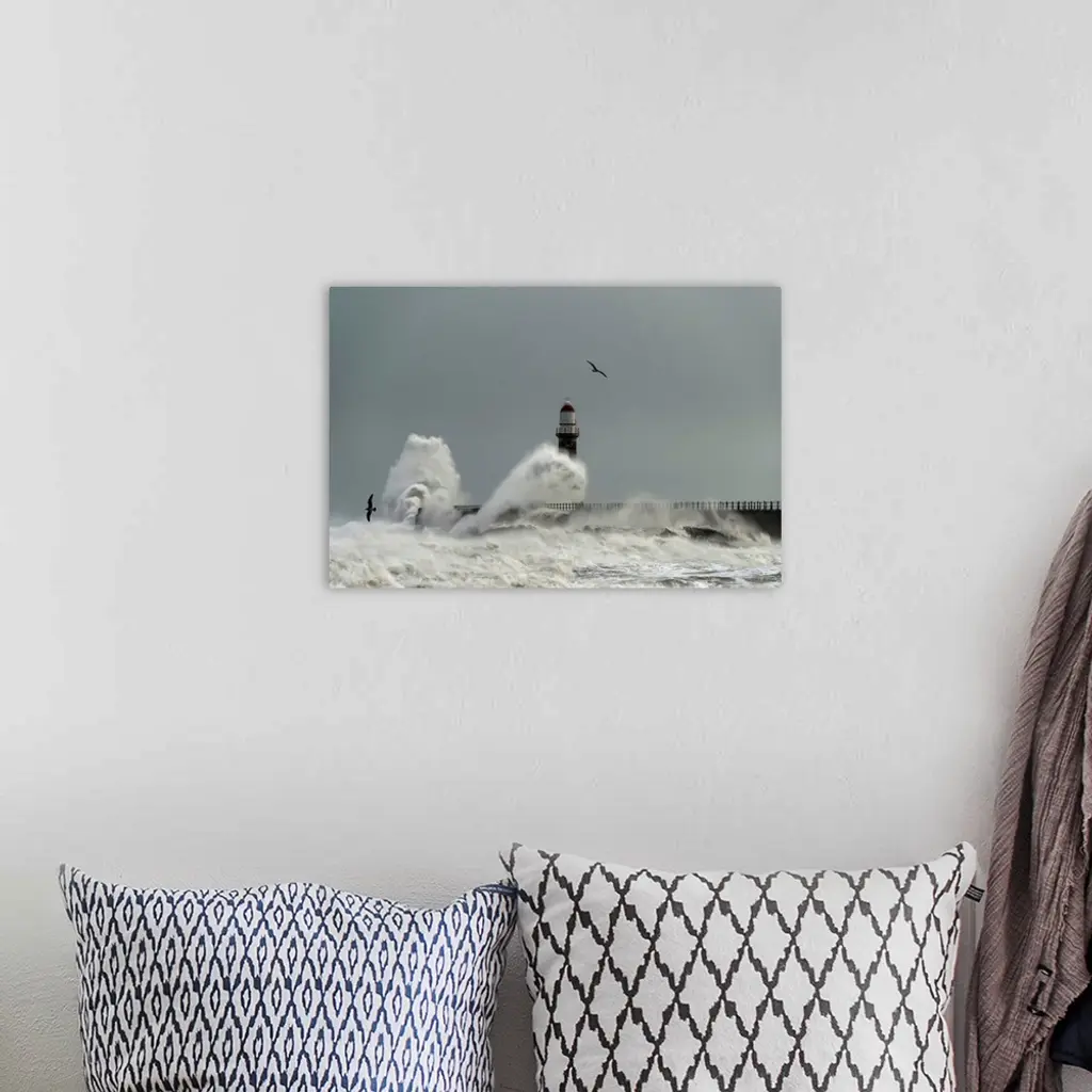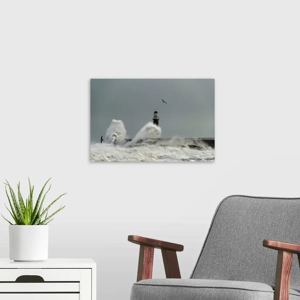 Roker Lighthouse And Waves From The River Ware, Sunderland, Tyne And Wear, England