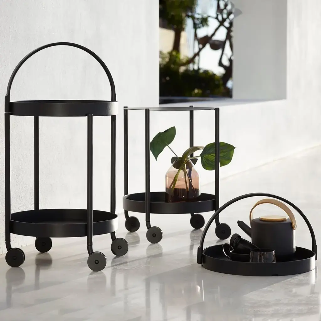The Roll series is a modern and minimalistic trolley in Scandinavian design. Roll is designed by the design duo Welling/Ludvik, known for pure aesthetic and letting each detail serve a functional purpose. Roll fulfills this to every detail as the elegant wheels make it easy to move around and the removable tray increases comfort. Roll is produced in powder coated aluminum, which ensures a resistant surface. The colours options are timeless.