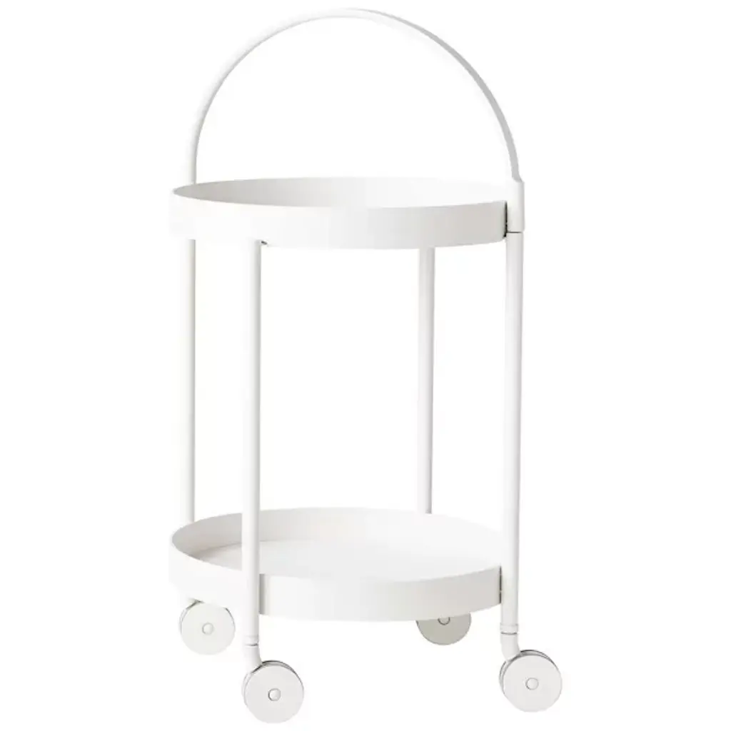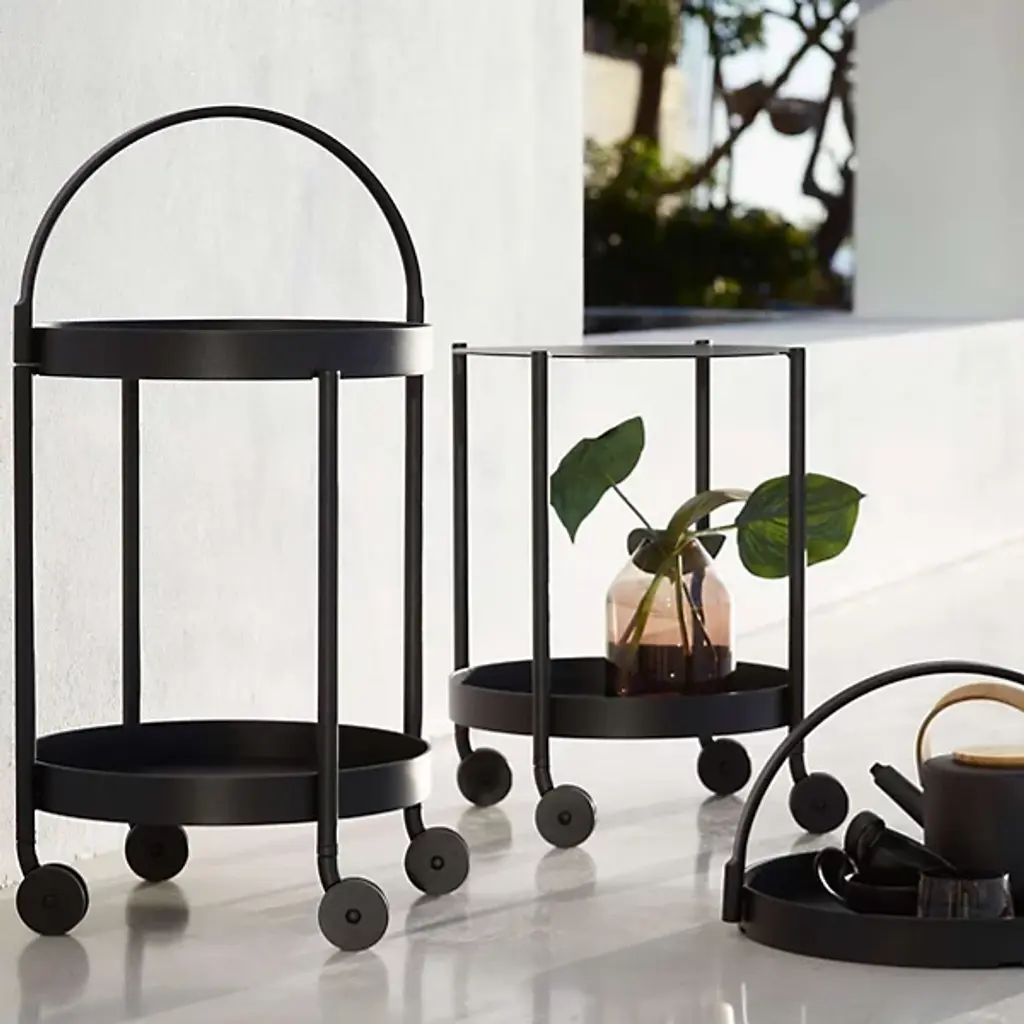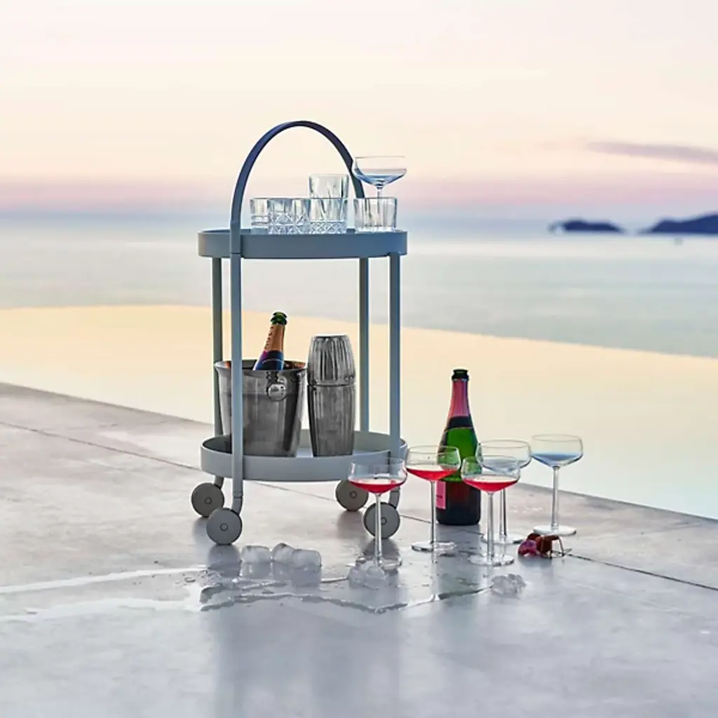 Let no beverage get left behind. The Cane-line Roll Trolley is a slender, Scandinavian-inspired trolley that provides two tiers of carrying space. The large handle helps you to move the trolley, plus it allows you to remove and carry the top tray by itself. Made out of durable powder coated aluminum, the trolley is great for outdoor or indoor use.