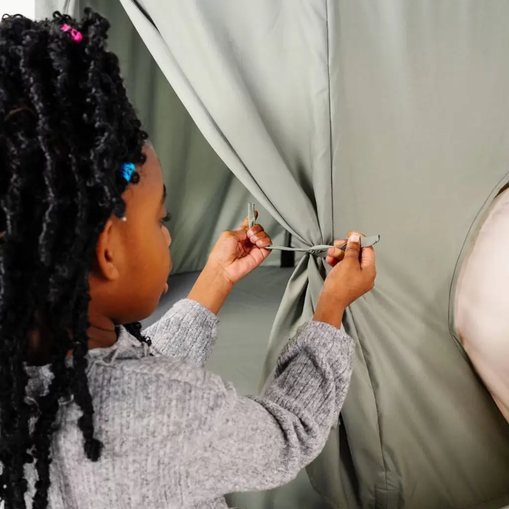 Play Tent, Tunnel, and Ball Pit, all in one! It’s like an entire (pop up) playroom in one tiny tote! Three pieces stand alone or fit together to create an immersive play place that’s endlessly open ended. Encourages movement and fosters creative play. Small on storage – big on fun.