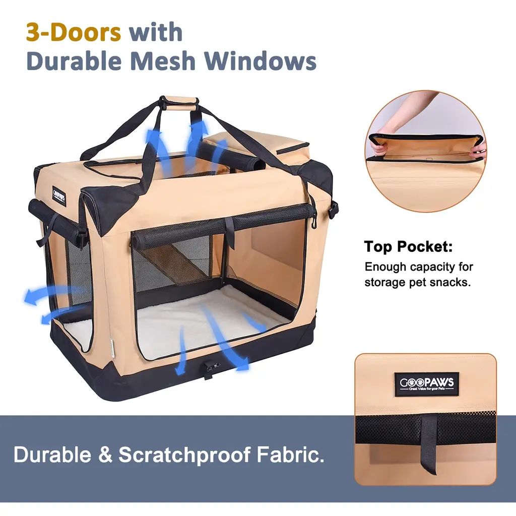 Specifications:Key Features:● Comfy and Pet Friendly Carrier: Equipped with a dual use pads, pets can rest on soft velvet in cold days and cool PP in hot days. Meanwhile, 3-sided mesh is designed to bring natural light in and reduce unpleasant odors. Besides, if you close the curtain, the pets will get a private and shaded space.● Lasting Fabric and Sturdy Structure: Adopting abrasion-resistant, sun-proof and easy-to-clean cationic dyed polyester, the pet carrier is dedicated to last for a long time. And the interior is designed with anti-scratch fabric for cats to grind paws. Additionally, the metal trolley is sturdy to hold up to 220 lbs.● Multiple Carrying Methods: Equipped with a handle that can be pulled upright or tilted and can be retracted from 25"-40", the pet carrier with wheels allows you to walk your pet steadily and in a comfortable position. Or you can attach the bag to your suitcase or car seat for outdoor exploration. Likewise, you can also simply use it as an indoor pet crate.● Ample Storage Capacity: Featuring multiple side pockets and a cup holder, your snacks, water bottles or other travel essentials can be hold in place. In addition, the pet carrier on wheels includes an additional pet bag, allowing individual use or you can fix it on the trolley to store pet supplies.● Foldable and Detachable Design: Since the pet carrier is removable, so you can detach the rolling pet carrier to a foldable trolley and carrier. Then you can fold and store them in limited corners when not in use. Of course, you can also carry them in the trunk of your car for traveling.