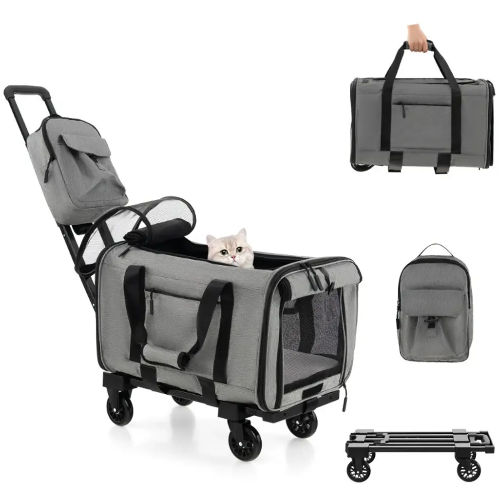 Rolling Cat Carrier With Dual-Use Pads And Litter Bag-Grey - Grey