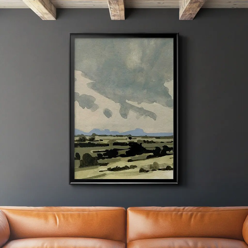 Rolling Fields Green And Brown And Multi And Rust Framed Art