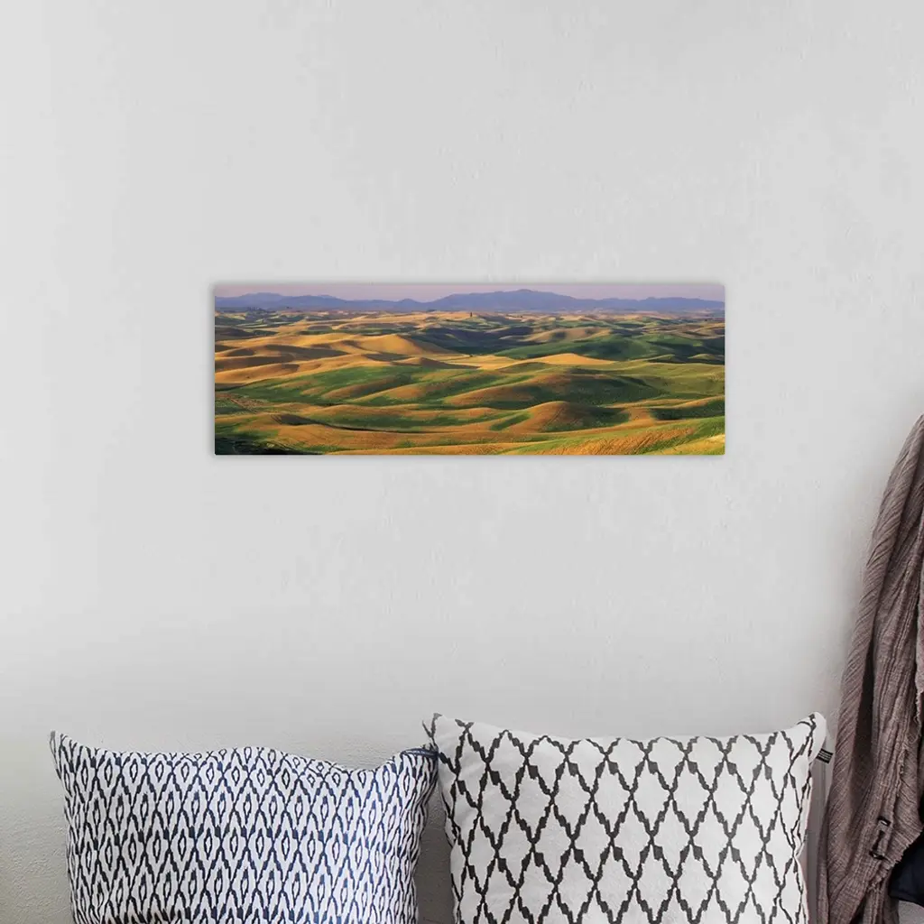 Rolling landscape with mountains in the background, Steptoe Butte State Park, Palouse, Whitman County, Washington State, wall art for home and office decor. Discover canvas art prints, photos, mural, big canvas art and framed wall art in GreatBigCanvas.com's varied collections.