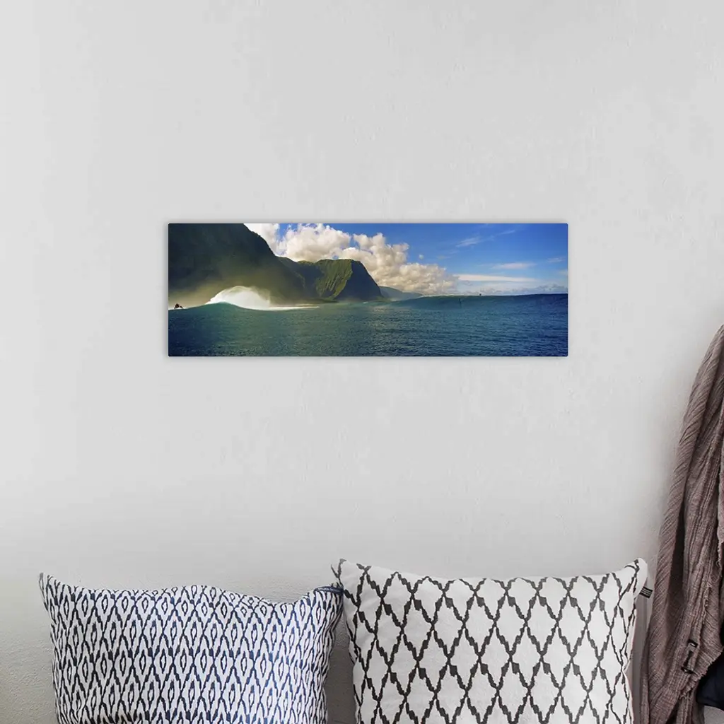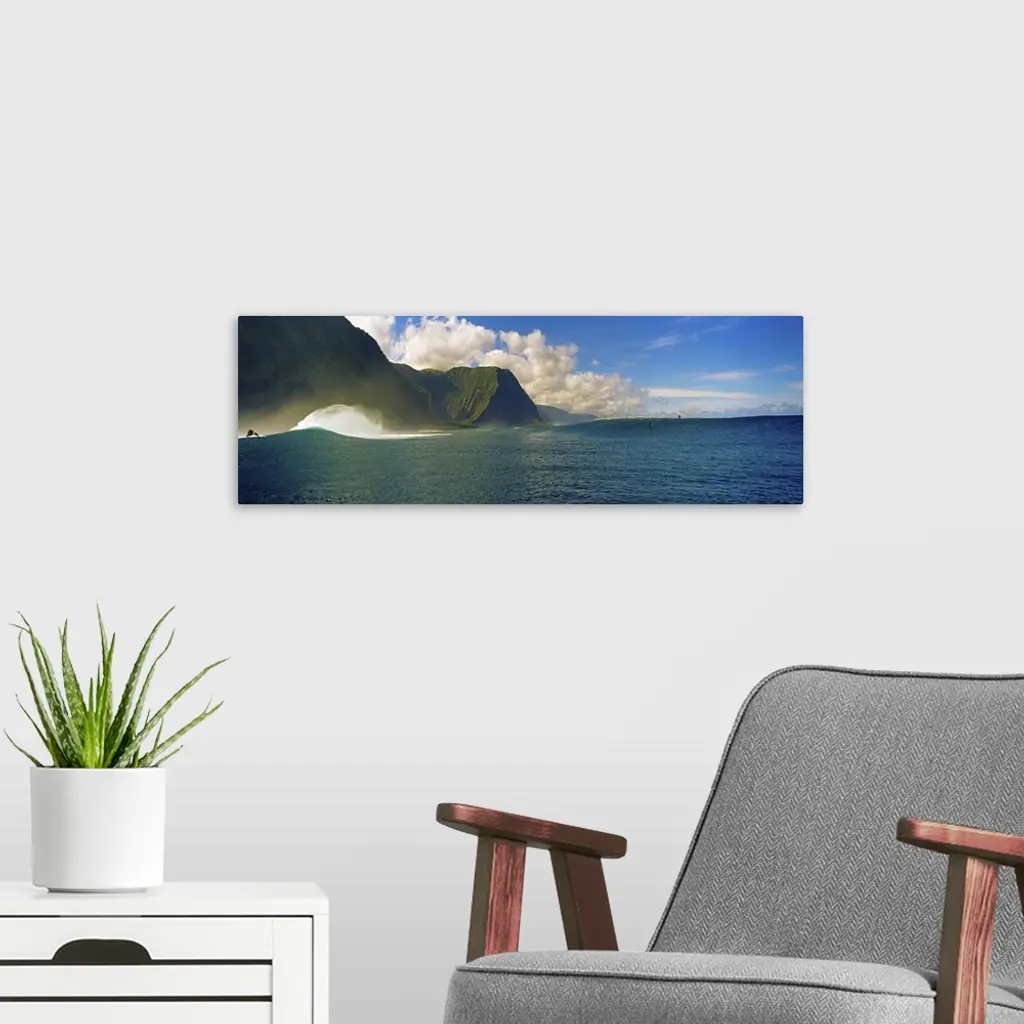 Rolling waves with mountains in the background, Molokai, Hawaii wall art for home and office decor. Discover canvas art prints, photos, mural, big canvas art and framed wall art in GreatBigCanvas.com's varied collections.