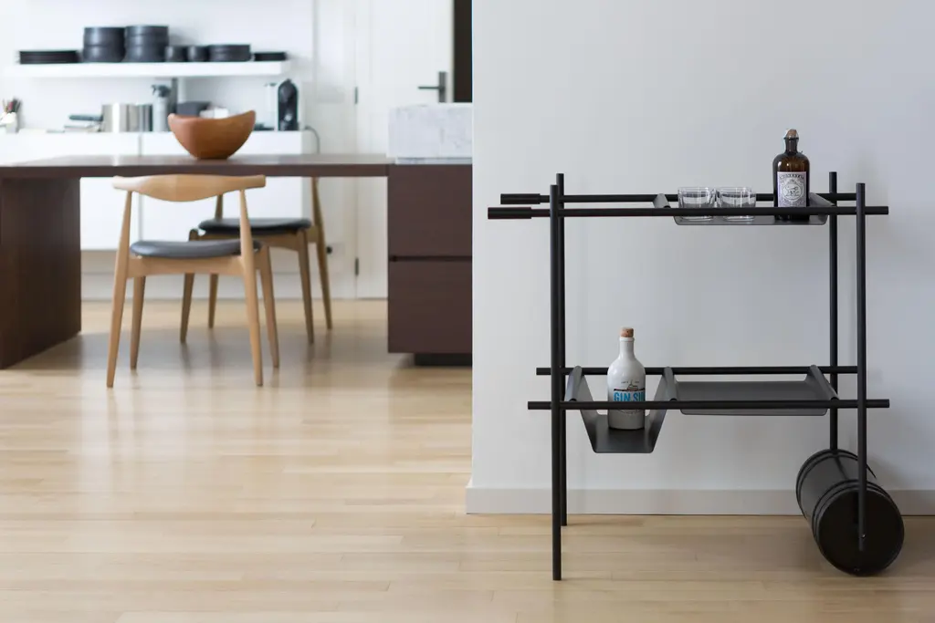 Rollingin is a trolley for liquor service. The project seeks the best blend of simple primordiality and artisan finesse in the same way one would describe a good gin and tonic. Numbered,Numbered