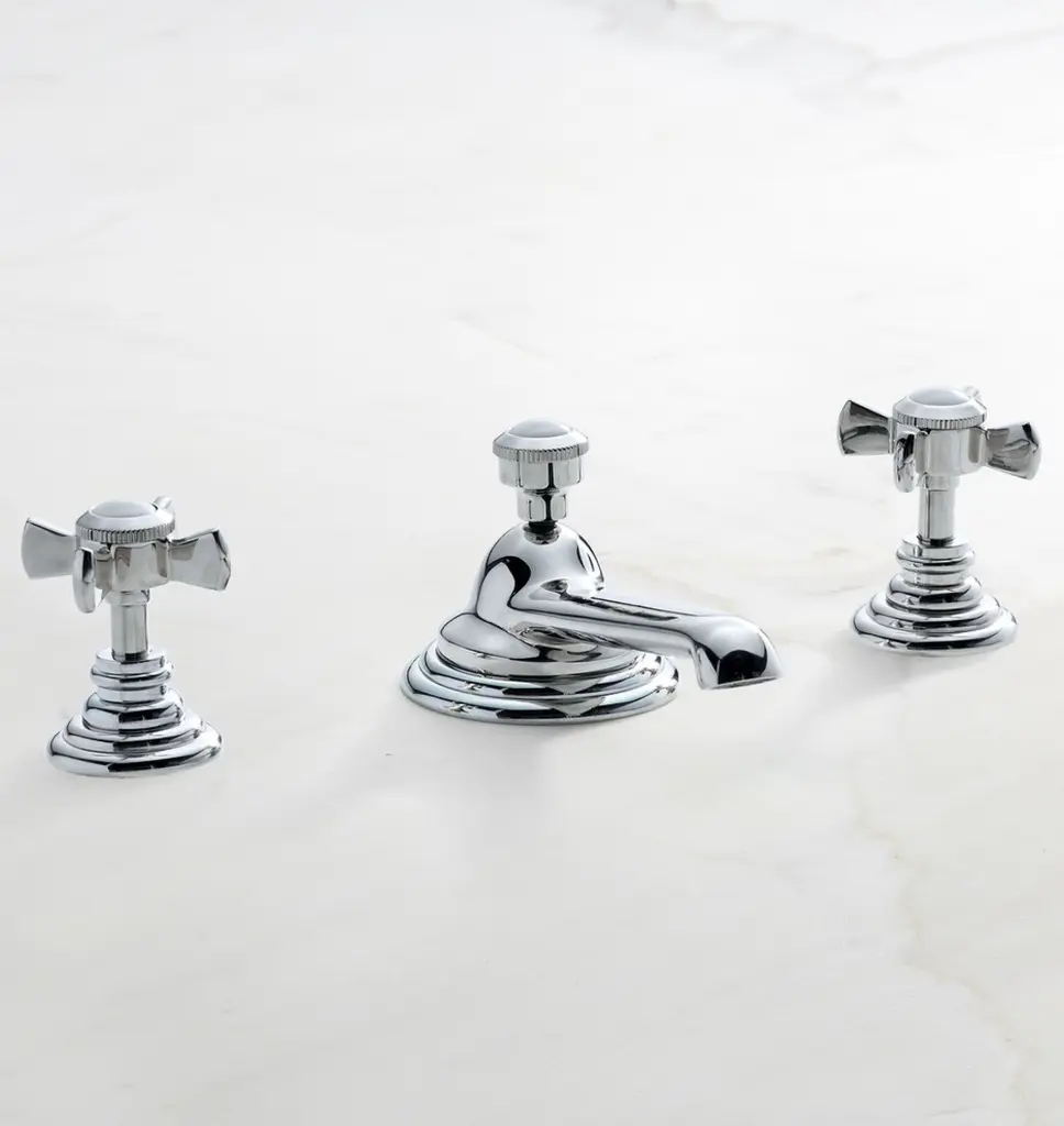 Cross handles and porcelain buttons give Rollins traditional appeal.
