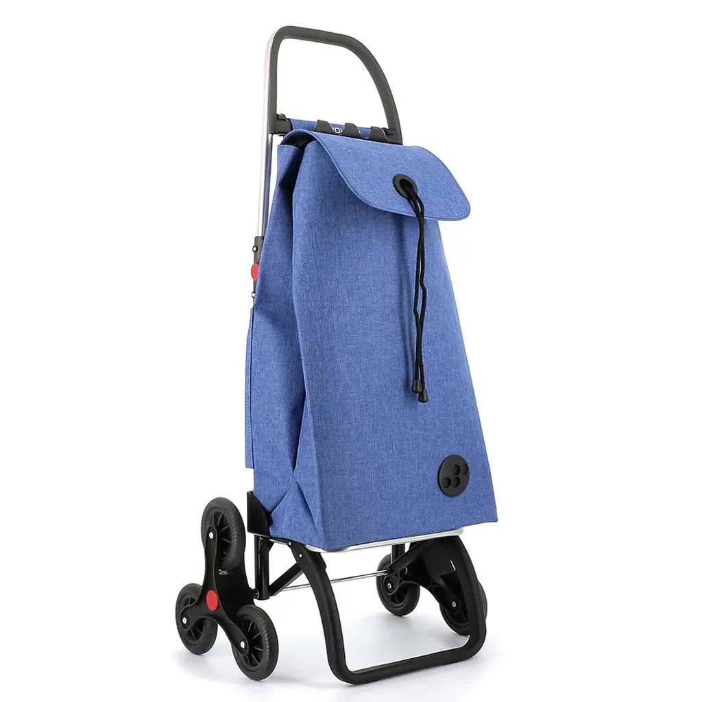 Rolser I-Max Tweed 6 Wheels Stair Climbers Foldable Shopping Trolley - 19.09 In. W X 42.32 In. H X 15.16 In. D - Blue