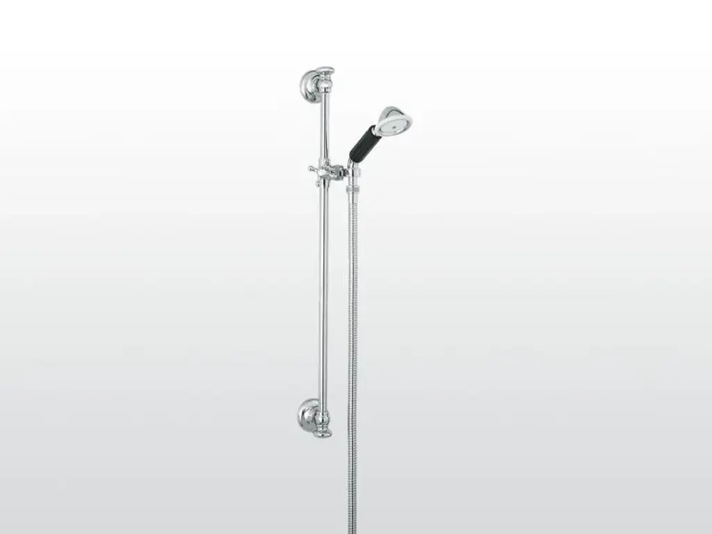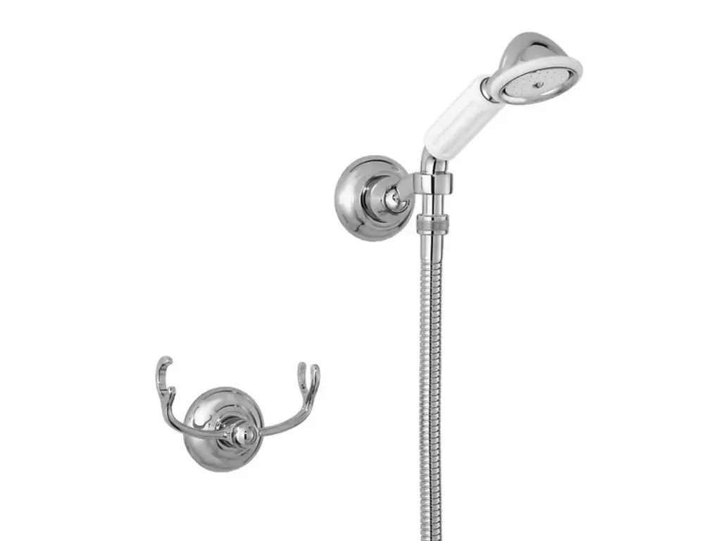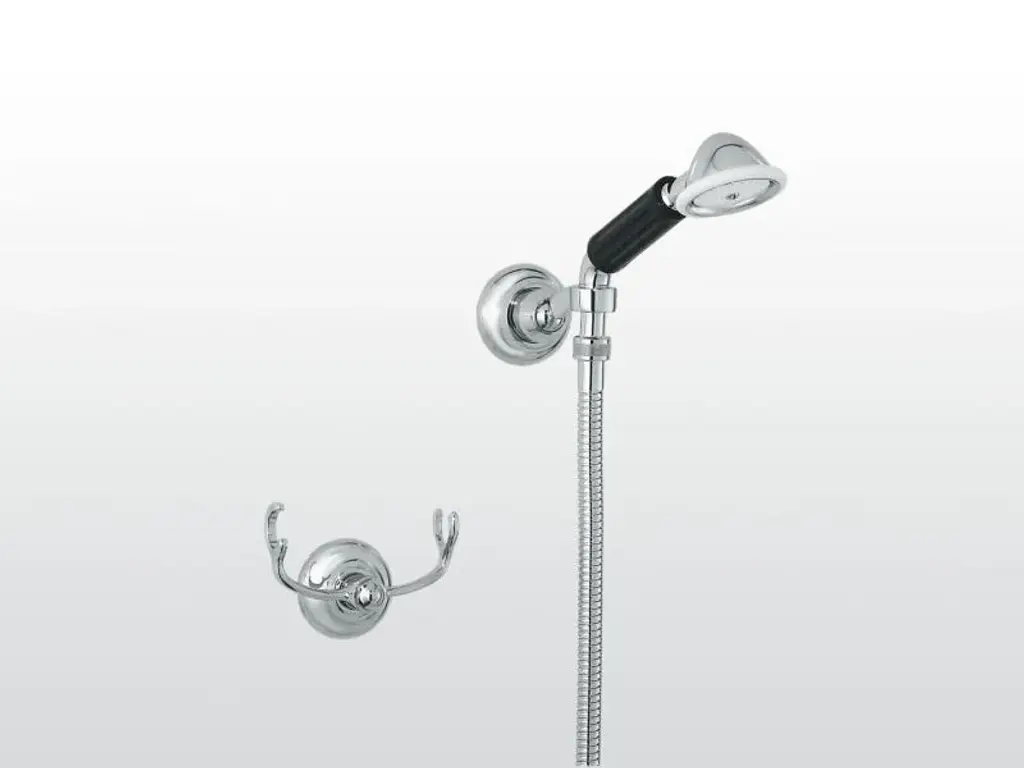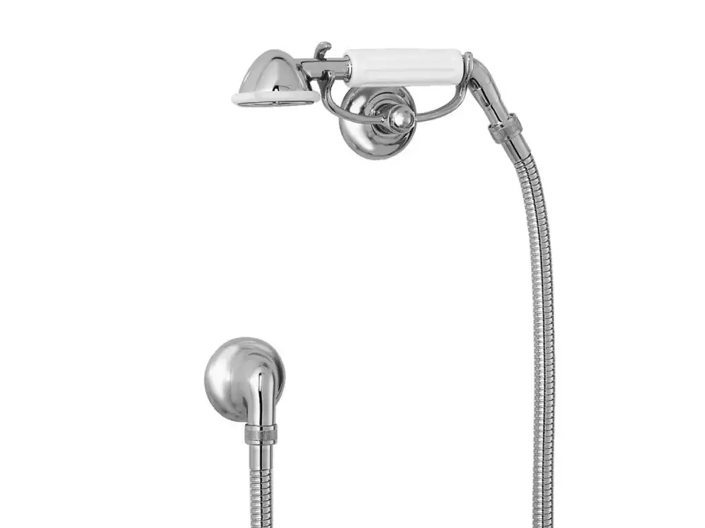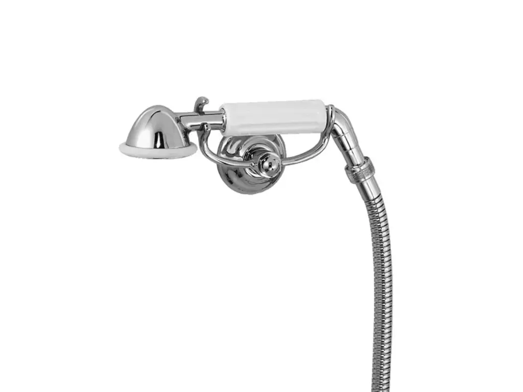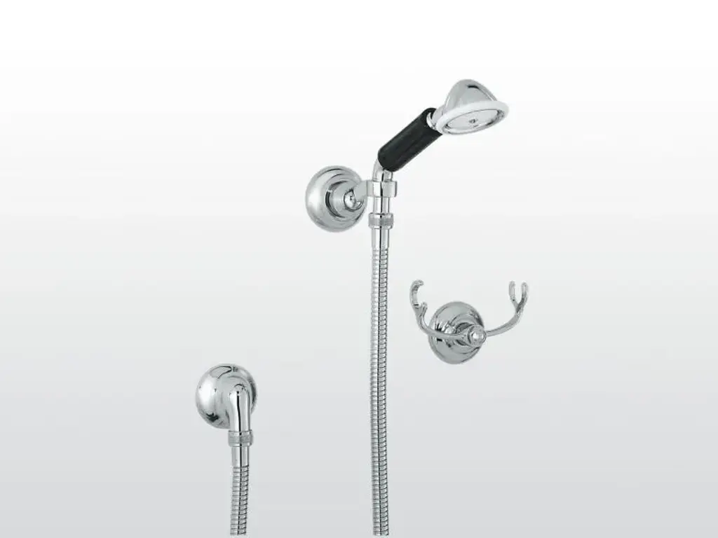 ROMA304 Hand spray head with wall bracket and other parts co-ordinated with Roma line.Flexible lenght 150 cm. To order the Roma shower handset in black or white plastic, add letter N (black) or B (white) to end of code no.The Roma collection has never been out of production since 1926. How many products in the world can claim such a record? Its classic design and absolute technical reliability have led to its success, and it has always been brought up to date without ever betraying the original design. Perfectly at home inthe most modern settings, the Roma is still today the “tap” par excellence.Rubinetterie Stella offers numerous possibilities for customizing its collections. In fact, each of the finishes, applicable to all the collections, has been designed to enhance the charm of the products.Chrome to accentuate the classicism, Bronze and Brass to enhance the retro tone, and Nickel, proposed in the Nickel PVD and Brushed nickel, for a modern retro effect with more sophisticated tones. The most precious galvanic finishes such as Silver and Gold or Rose Gold are created with a final carat of up to 23.5Kt, while PVD protections recently introduced are the extension of the whole range.PVD FinishPhysical Vapor Deposition, often abbreviated as PVD, is a method for coating all kinds of materials with a very strong adherence and high hardness, allowing chromatic variations - all similar to galvanic finishes - and with different aspects depending on the substrate to which they are applied.The decorative PVD treatment, used by Rubinetterie Stella, allows the deposition of a thin but very hard layer on the article to be coated to obtain a series of characteristics:- Abrasion resistance due to hardness (up to 1000/2500 HV) obtained on the treated surface- Inalterability to UV rays and resistance to solvents and corrosion- Coloring with great chromatic effect such as gilding, nickel plating, gunmetal black and many others- Wide range of surface finishes ranging from bright, satin polish to various shades of opacity- The PVD finish is hypoallergenicFinally, it is worth pointing out that the entire PVD process is harmless to the environment. The PVD process is safe, clean and sustainable, it is non-toxic and is even used for the treatment of medical instruments such as for scalpel blades, where sharpening and its duration are important, as well as for kitchen equipment, such as cutlery, trays and furnishing accessories intended for prolonged contact with people
