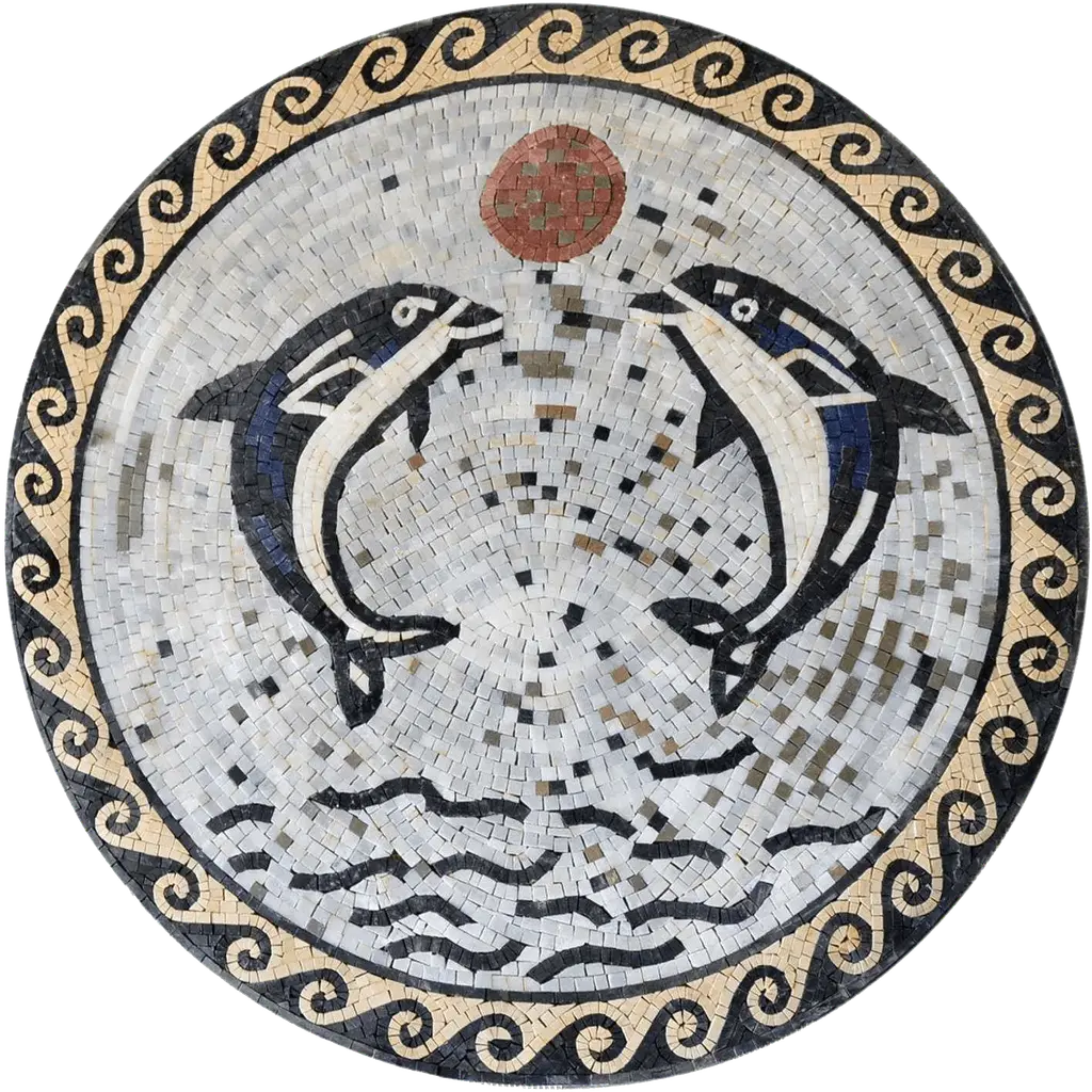 Our Gaya Roman mosaic accent tile makes a stylish statement in your home or as a showpiece mosaic for the pool and patio. A medallion mosaic it showcases a roman guilloche braid and a stunning wave motif . This handcrafted mosaic comes with a mesh backing for easy wall or floor placement and installation.