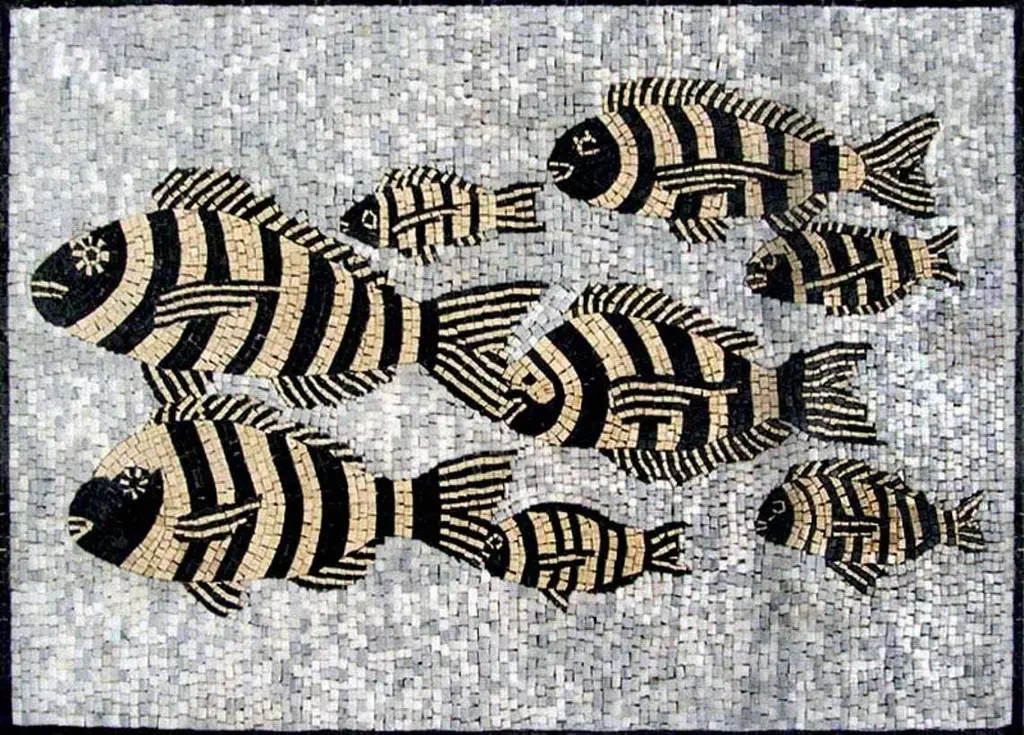 Introducing our exquisite Roman Mosaic Fish Design Fully Handmade Tile Art, a stunning piece that celebrates the timeless beauty of ancient craftsmanship. Each tile is meticulously crafted from natural marble, ensuring that every piece is unique and rich in character. This beautiful mosaic captures the essence of Roman artistry, featuring a captivating fish design that adds elegance and charm to any space.Perfect for enhancing your pool area, bathroom shower, or any indoor or outdoor setting, this tile art brings a touch of history and sophistication to your decor. The intricate details of the fish design reflect the traditional techniques of Roman mosaic artisans, making it a true work of art that stands the test of time.The Roman Mosaic Fish Design Fully Handmade Tile Art not only serves as a functional piece but also as a conversation starter, evoking the allure of ancient Roman culture. Its durable marble composition ensures it can withstand moisture in wet areas, making it ideal for luxurious and stylish installations.Transform your living space with this stunning tile art and embrace the harmony of nature and artistry. The Roman Mosaic Fish Design Fully Handmade Tile Art is not just a decoration; it’s an investment in beauty and craftsmanship that will enhance your home for years to come. Bring the spirit of ancient Rome into your everyday life—order yours today and let this masterpiece inspire your decor!