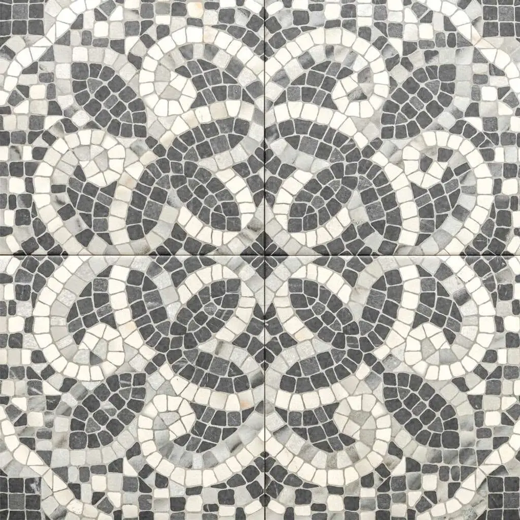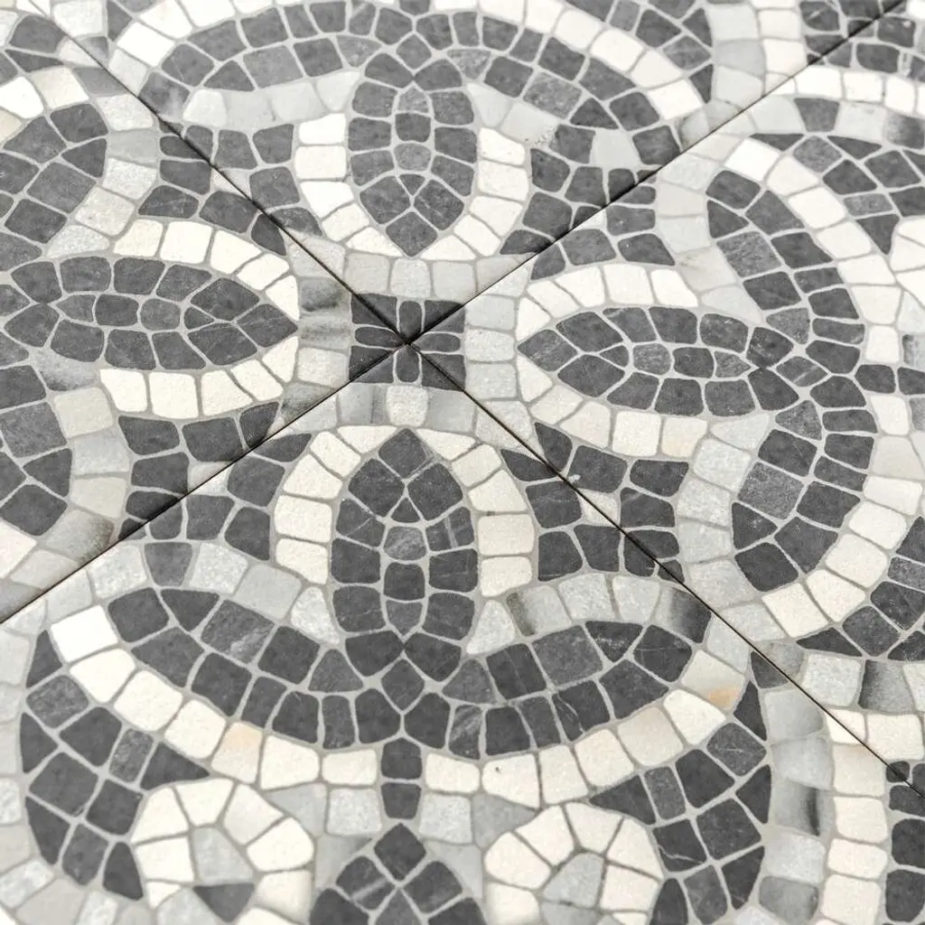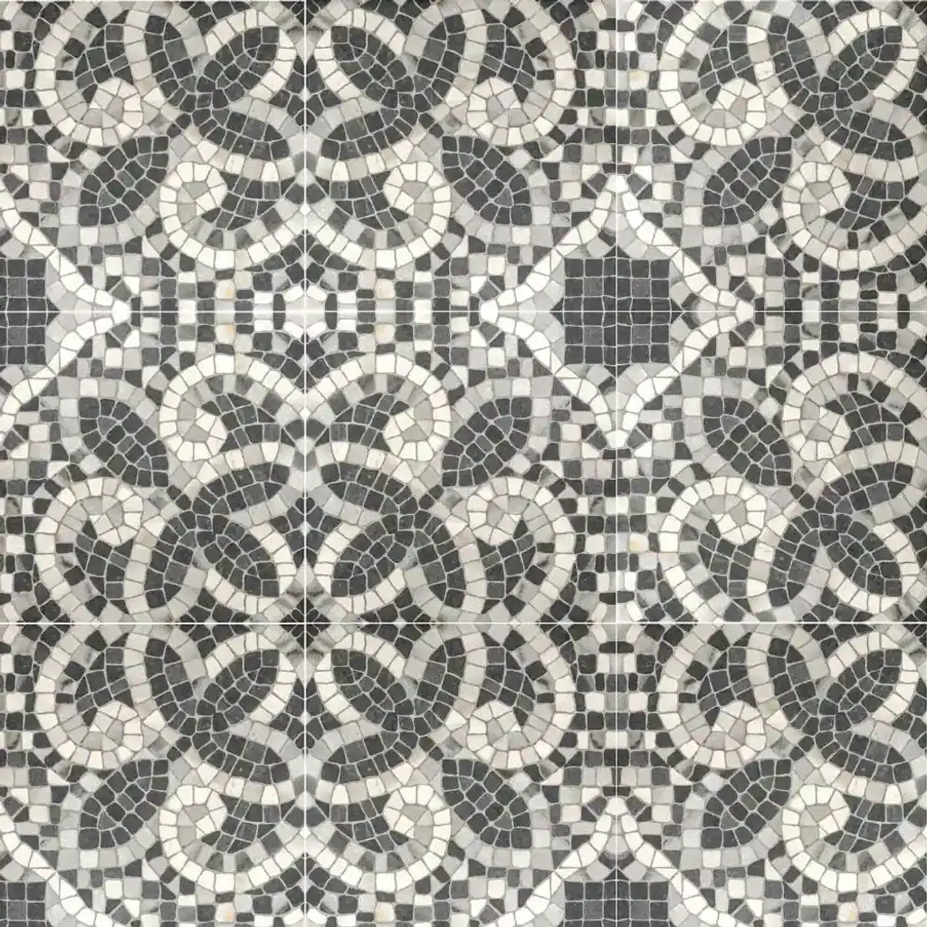 The Roman Road Collection combines traditional aesthetics with modern craftsmanship, featuring mosaics that create a detailed, encaustic-inspired look. Shades of gray are expertly arranged to form intricate patterns that exude timeless elegance. Made from porcelain with hand-cut stone mosaics, these tiles offer a matte finish that adds understated sophistication to any space. Designed in Spain, the Roman Road Collection brings enduring beauty and refined design to your interiors, perfect for those who value the blend of classic and contemporary styles. FEATURES:DIMENSIONS: