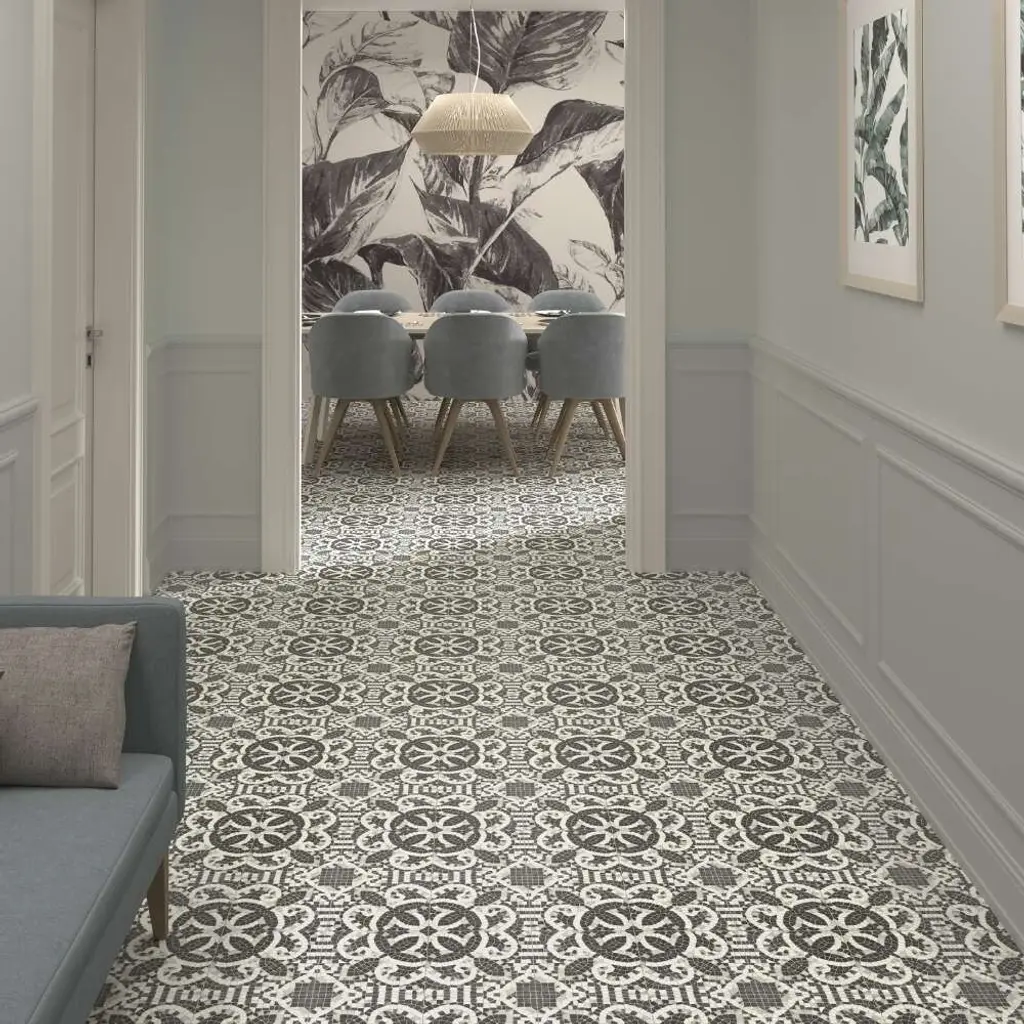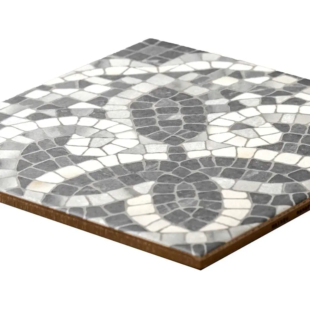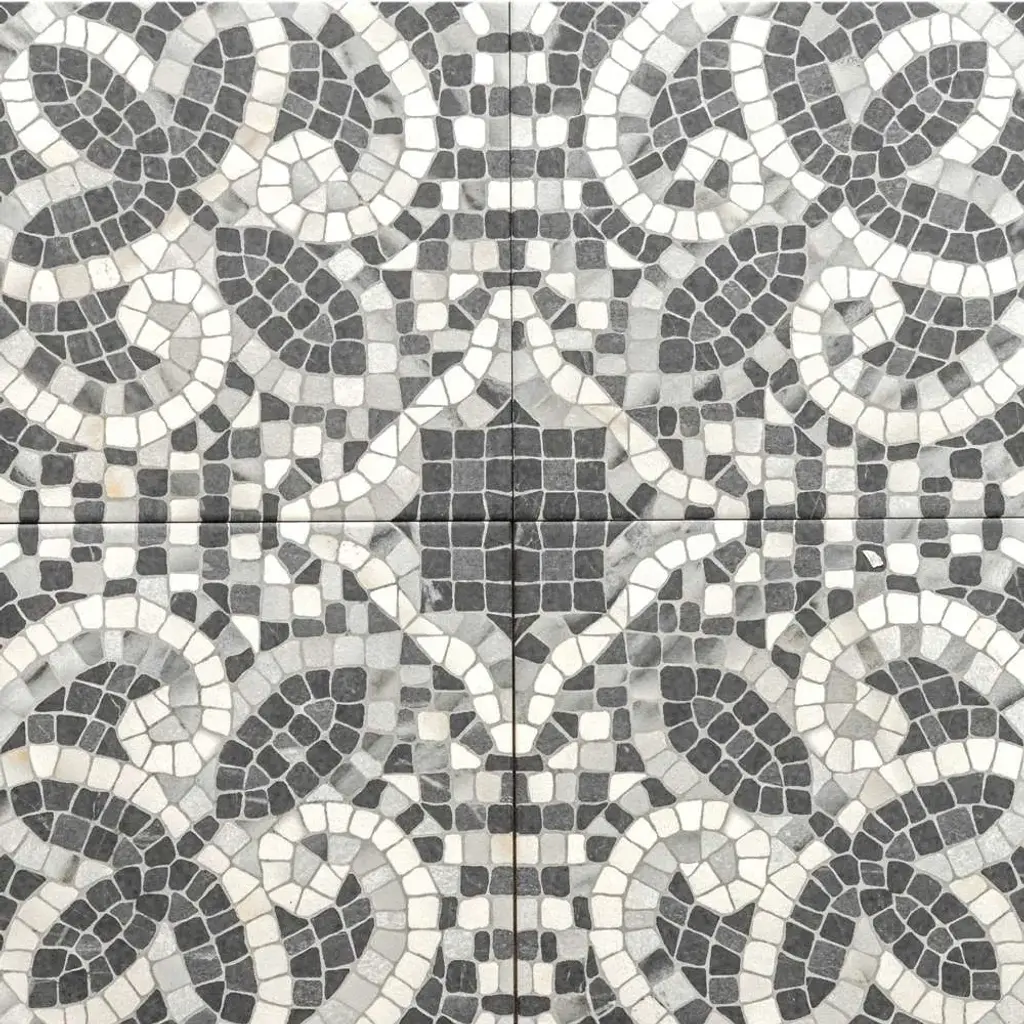 The Roman Road Collection combines traditional aesthetics with modern craftsmanship, featuring mosaics that create a detailed, encaustic-inspired look. Shades of gray are expertly arranged to form intricate patterns that exude timeless elegance. Made from porcelain with hand-cut stone mosaics, these tiles offer a matte finish that adds understated sophistication to any space. Designed in Spain, the Roman Road Collection brings enduring beauty and refined design to your interiors, perfect for those who value the blend of classic and contemporary styles. FEATURES:DIMENSIONS: