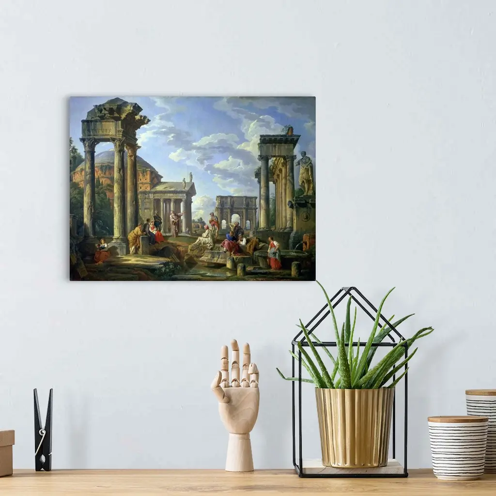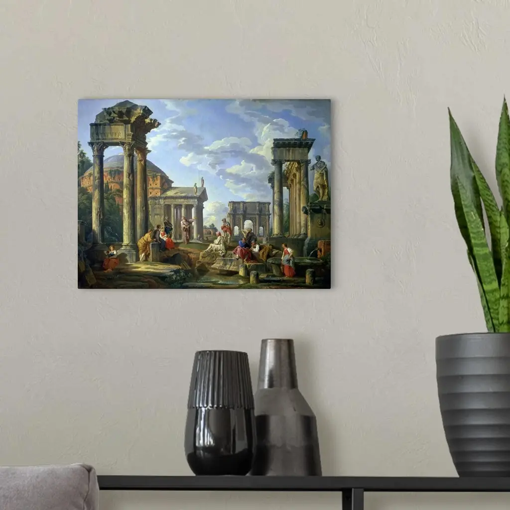 XAM77179 Roman Ruins with a Prophet, 1751 by Pannini or Panini, Giovanni Paolo (1691/2-1765); oil on canvas; 98x134.5 cm; Private Collection; Italian, out of copyright