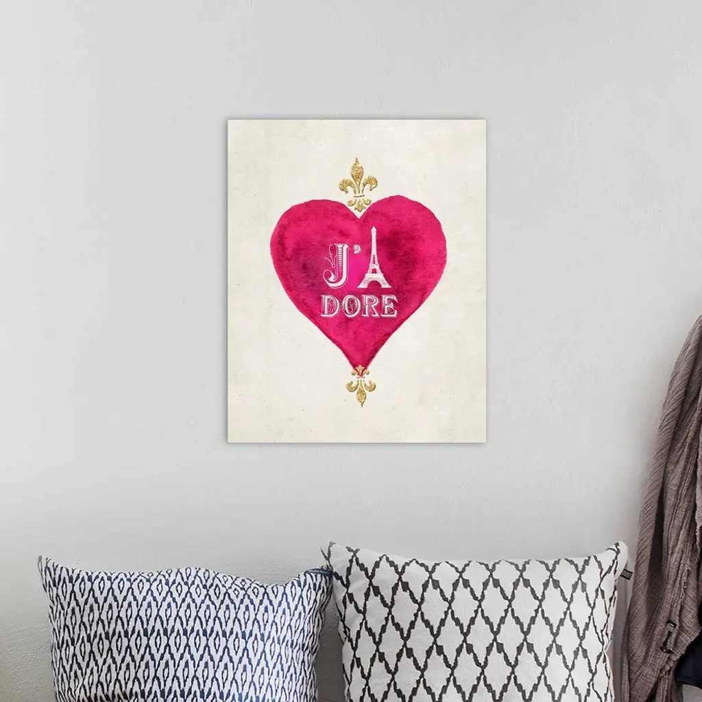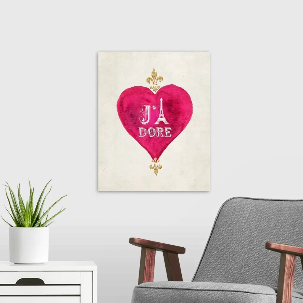 Gold lettering in pink heart against a weathered neutral background.
