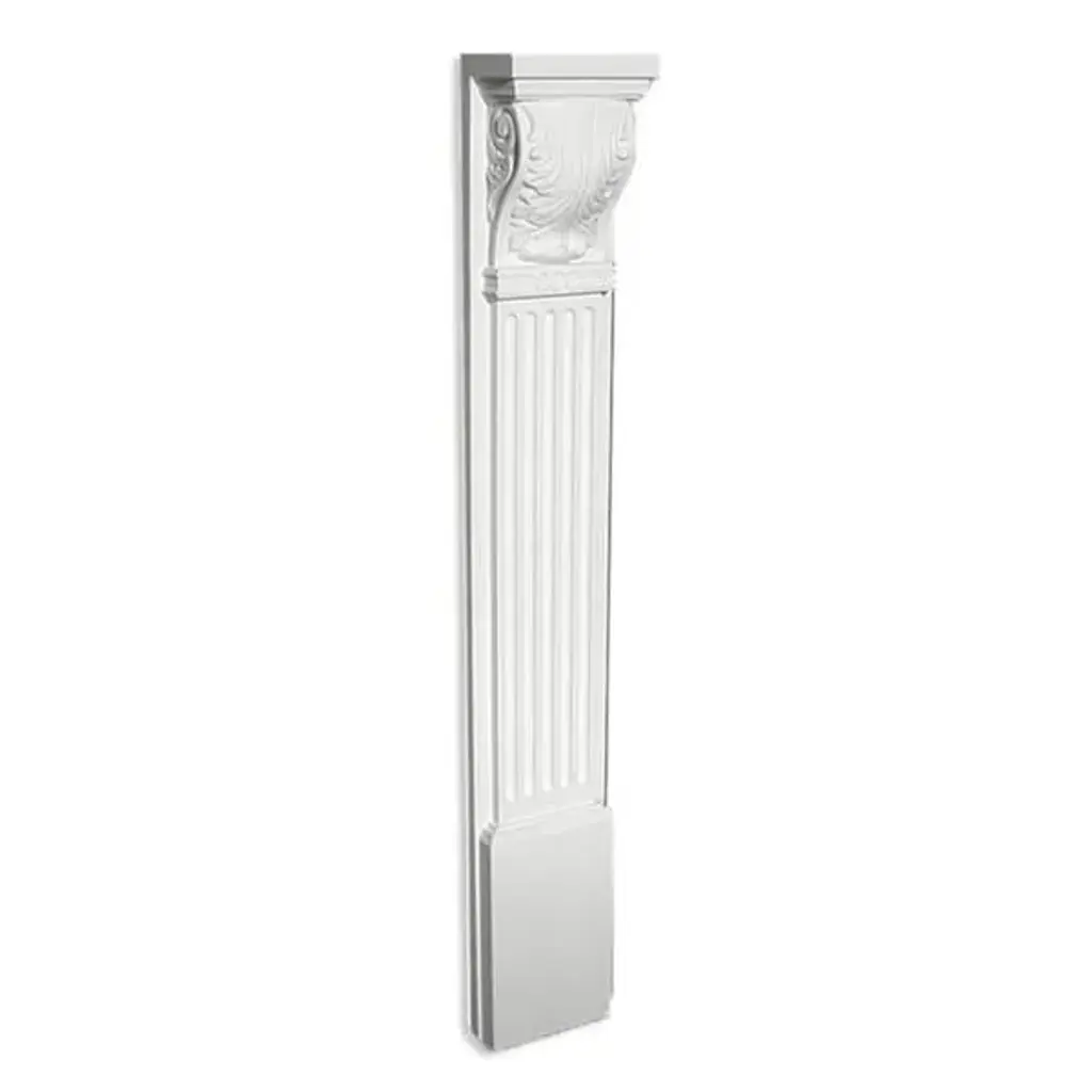 Add a touch of classic elegance to your home with this Romanesque Column Pilaster Corbel. Expertly crafted from a hard-condensed polyurethane compound, this column is incredibly durable and long-lasting, outperforming both MDF and wood. With lightweight and semi-flexible features, this pre-primed and paint-ready column is safe to use both indoors and outdoors. You can rest easy knowing that it won't splinter, rot, or mold while providing a secure and stable feel. This 43.25 inches high x 6.625 inches wide x 3.875 inches deep column is easy to install with finishing nails or screws and Loctite Power Grab all-purpose construction adhesive.Features: