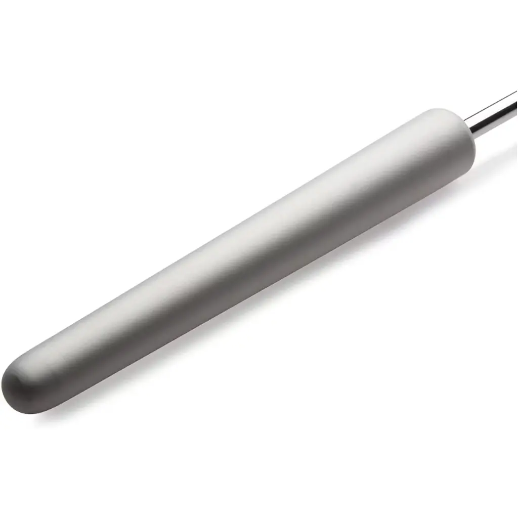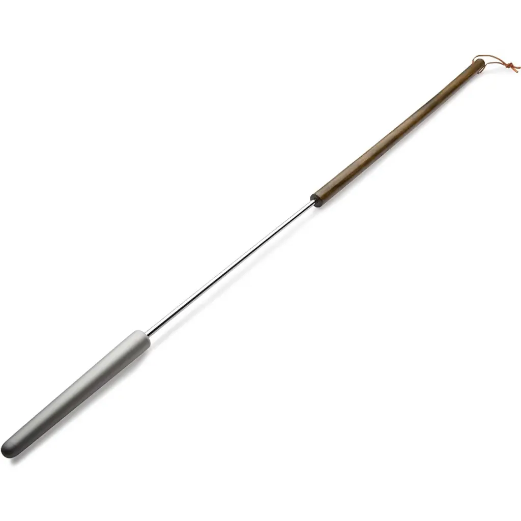 Make hot doughy treats over a campfire using store-bought refrigerated dough (the pop-open tube style) such as buttermilk biscuits and crescent rolls. Just roll a snake of dough onto the breadstick in a corkscrew fashion. Hold over a fire turning slowly until the dough is golden brown on the outside & puffy on the inside. Slide dough off the stick & fill the cavity with jam, honey, butter, cheese etc. 38 inch overall length. Chrome plated steel rod, aluminum cooking stick and 21 inch extra long wood handle with leather hanging strap. Made by outdoor cookware specialist Rome Industries.