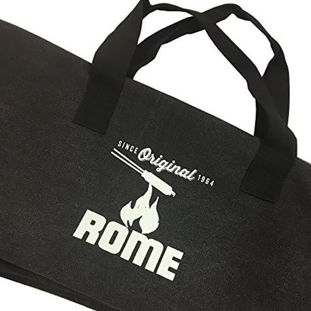 A convenient way to travel with and store your collection of Rome pie irons. Measures 30" x 10" and made from charcoal black canvas with with silk screened logo and easy carry handles. Unzips on 3 sides for easy opening and closing.Carrying and storing your pie irons is easy with this bag. Holds up to 6 single pie irons.Zip closure, durable canvas. 31-1/2"L x 9-1/2"W. Note: Pictured with pie iron (sold separately)