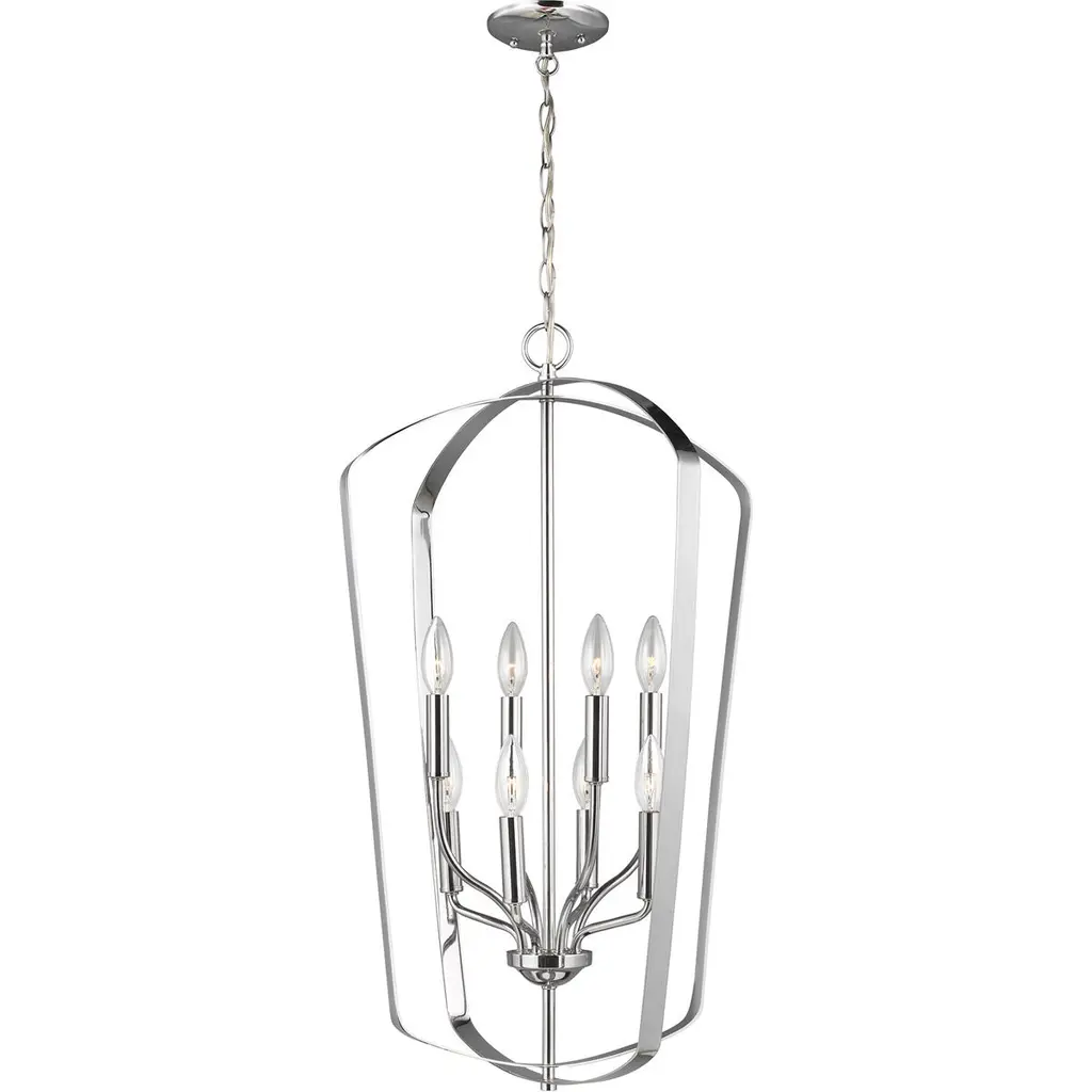 Elegant design with classic flair. Sporting candelabra luminaires in a handsome enclosure, the Romee Foyer Pendant by Generation Lighting, formerly known as Sea Gull Lighting, embraces the best of traditional fixture aesthetics. Its smooth lines and simple curvilinear profile contribute a touch of modernity to an otherwise vintage look, making this pendant an easy match for any era décor story.