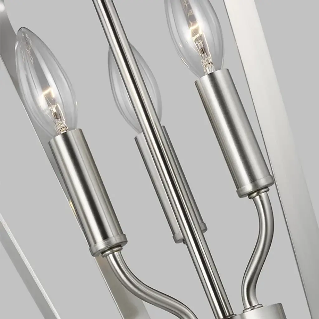 Elegant design with classic flair. Sporting candelabra luminaires in a handsome enclosure, the Romee Foyer Pendant by Generation Lighting, formerly known as Sea Gull Lighting, embraces the best of traditional fixture aesthetics. Its smooth lines and simple curvilinear profile contribute a touch of modernity to an otherwise vintage look, making this pendant an easy match for any era décor story.