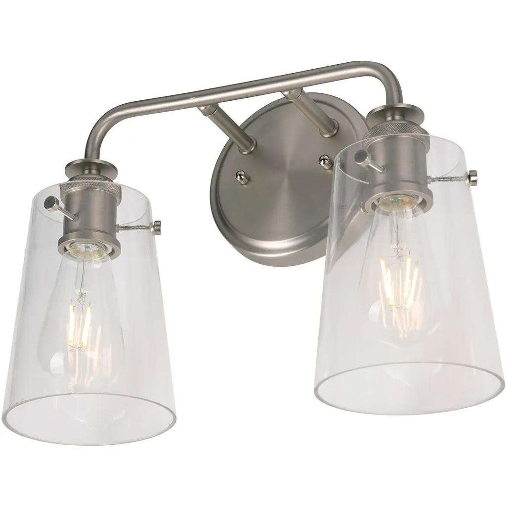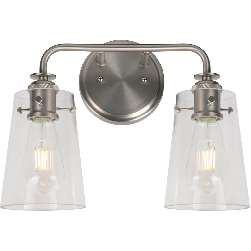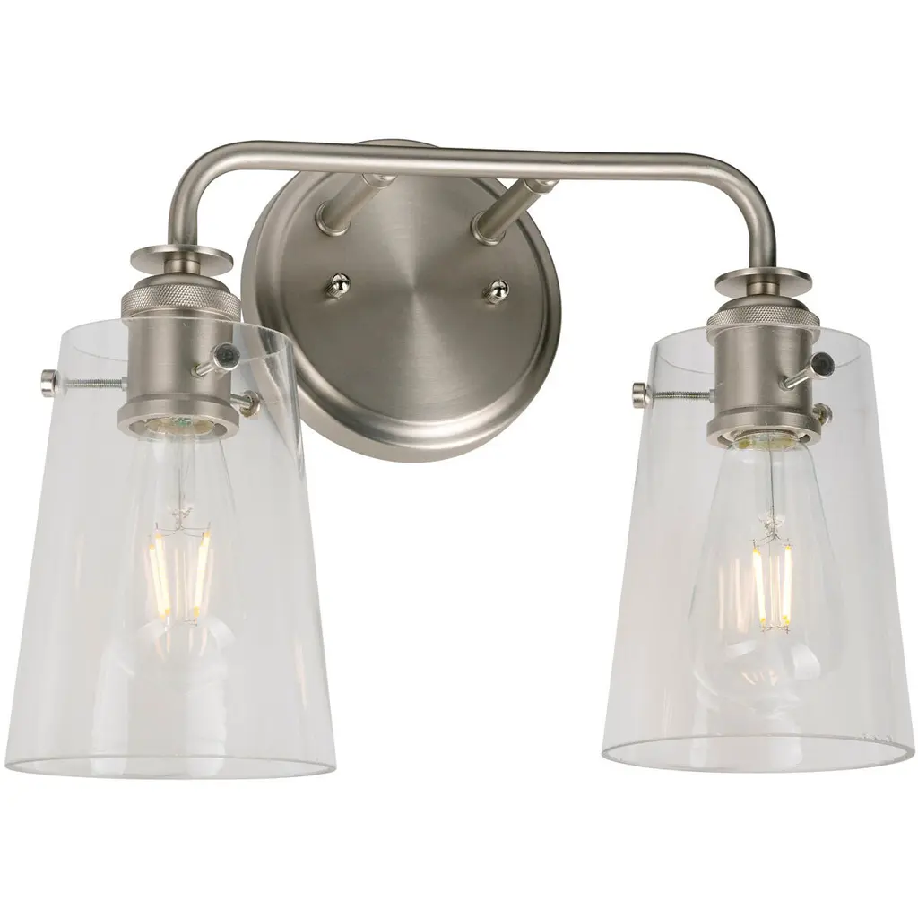 2-Light Brushed Nickel Bath Light with Clear Glass