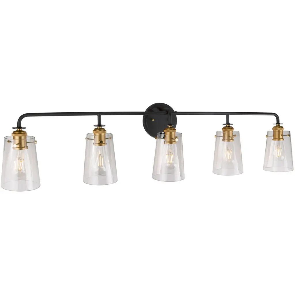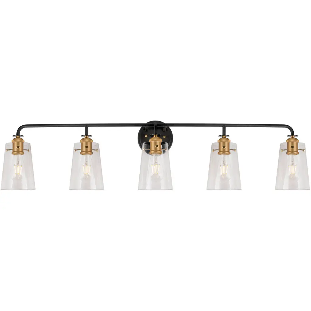 5-Light Black and Soft Gold Bath Light with Clear Glass