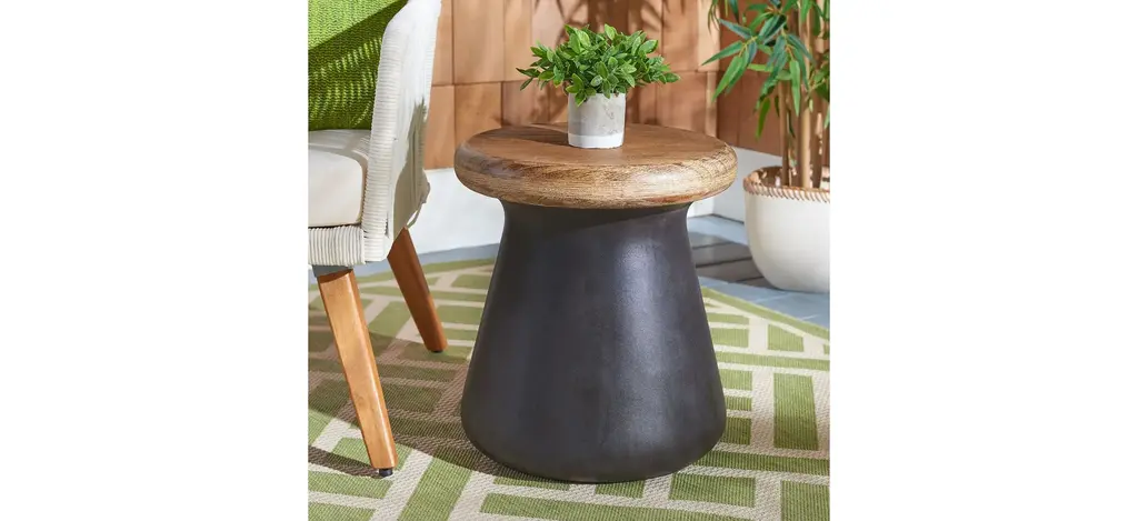 Designed to evoke a modern flair, the Ronson concrete accent table combines form and function. Crafted of an acacia wood top and a rich black base, this piece lends chic character to any space. Perfect for indoor and outdoor use.
