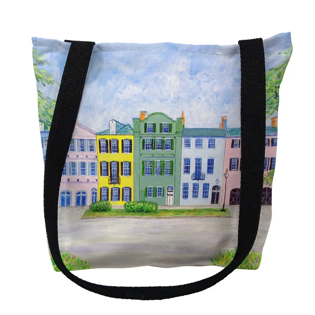 This versatile t-bottom tote bag is a great way to show your style with edge-to-edge sublimation printing in vibrant full color. The black cotton straps are soft to the touch and the exterior is water-resistant. All of our products are based on designs by artists R.B. Hamilton and Betsy Drake and are printed in the USA from imported materials. We offer three sizes: Small totes are 13x13, Medium totes are 16x16, and Large totes are 18x18.
