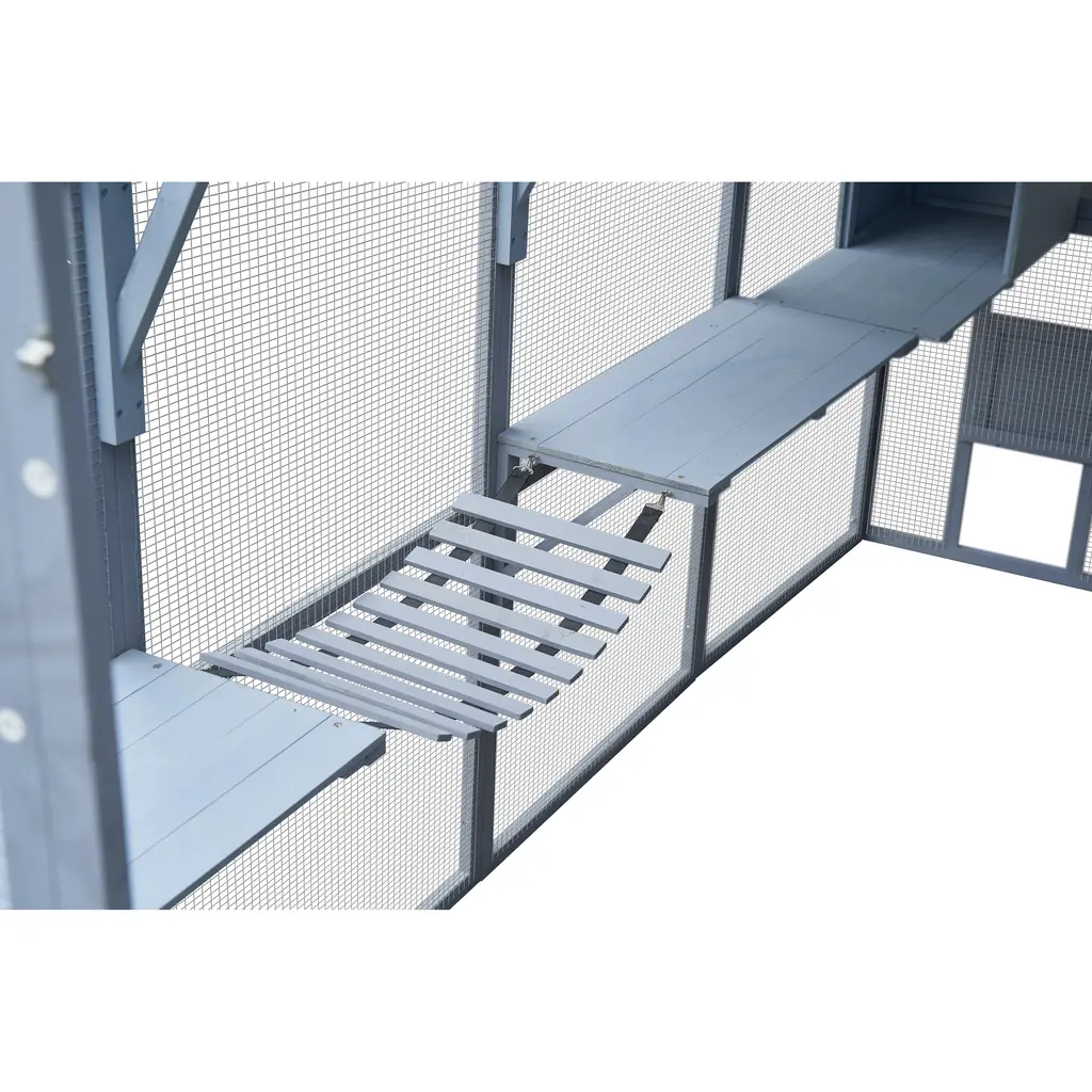 Roomfitters Outdoor Cat House, Large 110" Kitten Playpen With Platforms And Upgrade Waterproof Cover, Grey - Blue+grey
