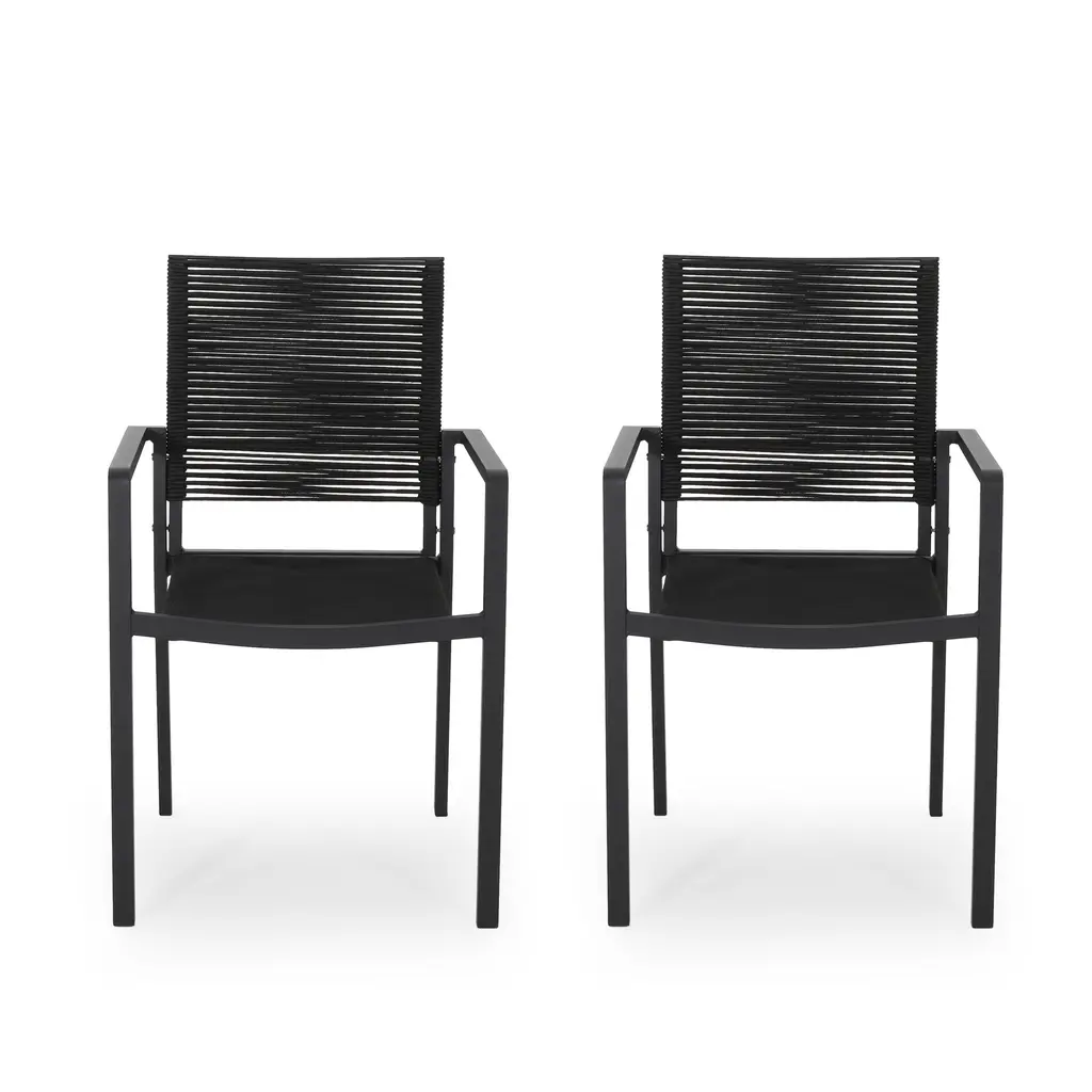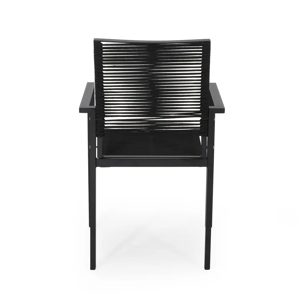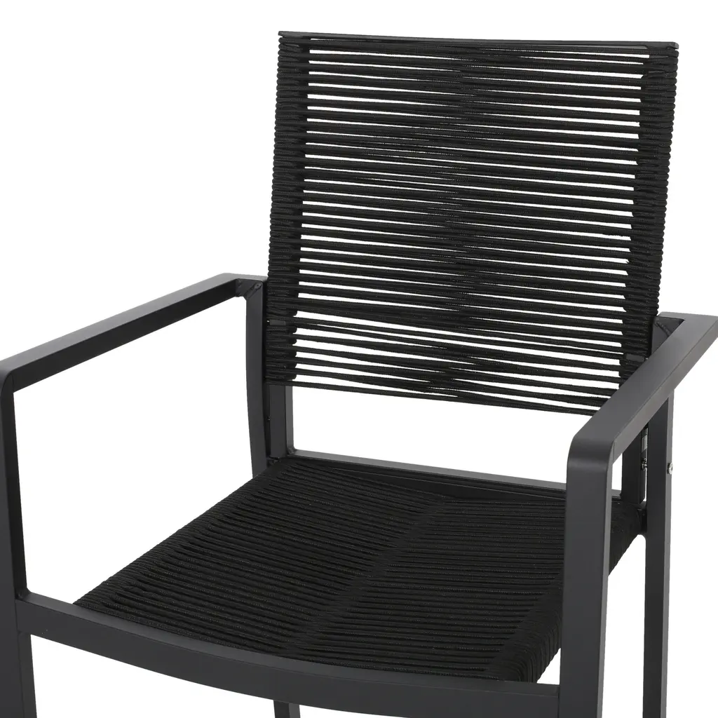 Roomfitters Outdoor Modern Aluminum Dining Chairs With Rope Seat, Set Of 2, Stylish And Comfortable Design For Patio - Black