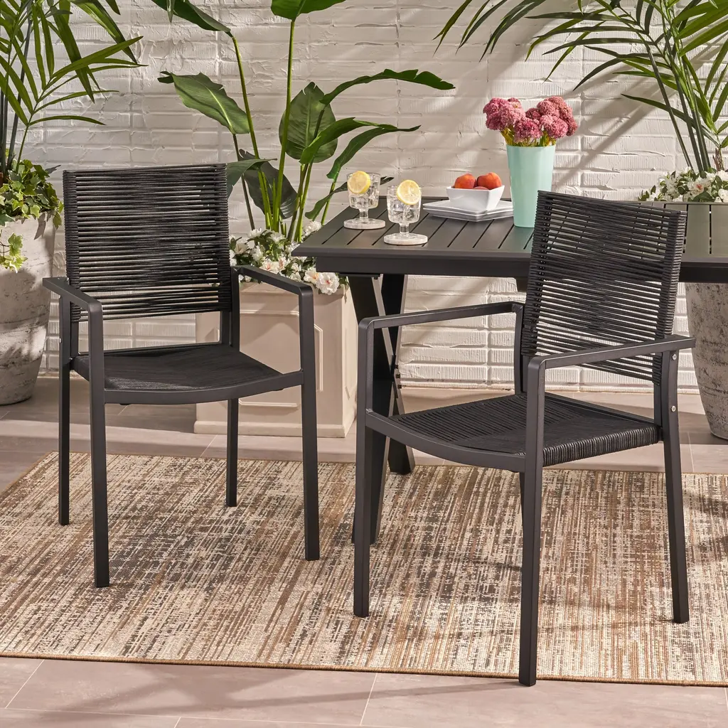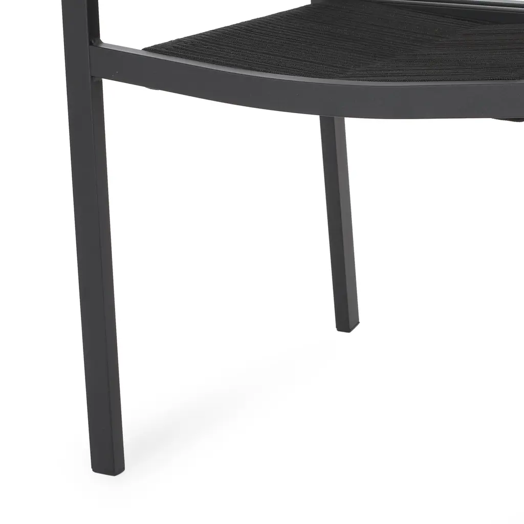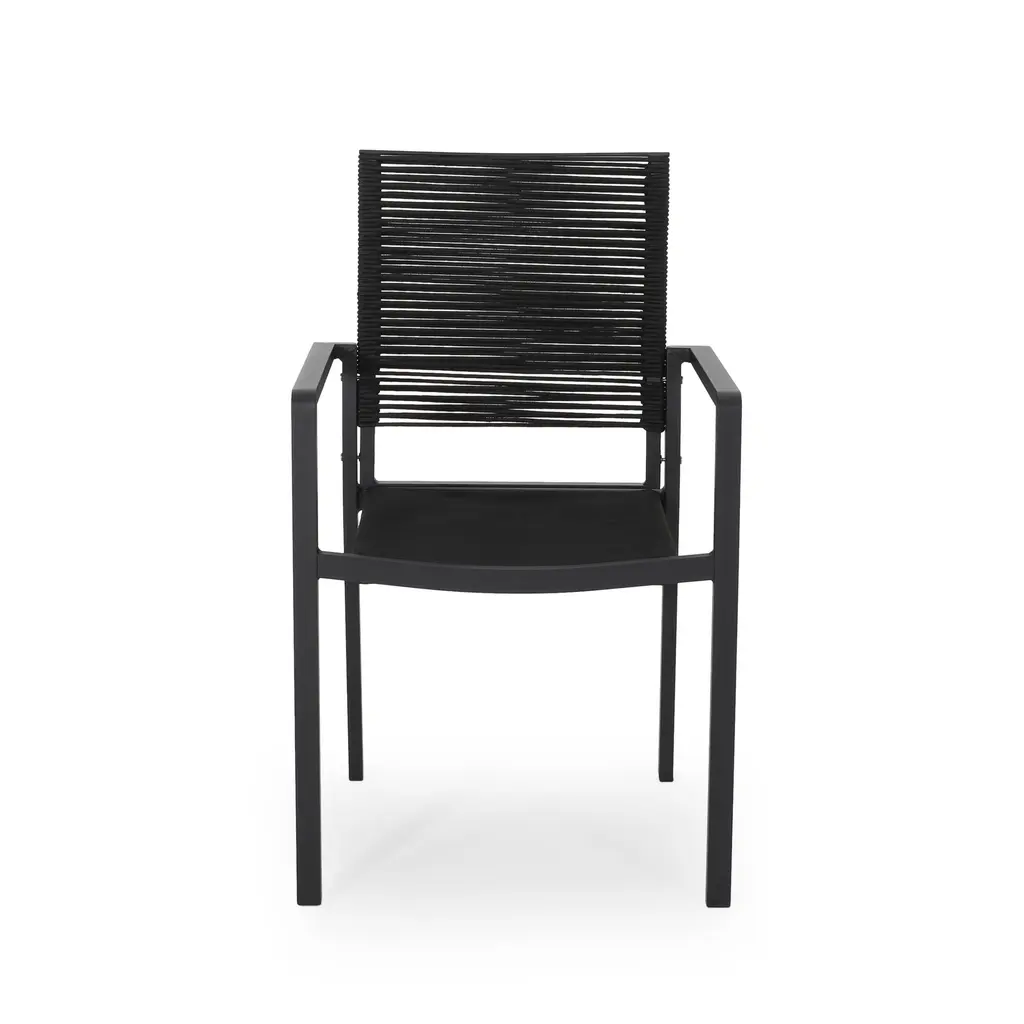 Roomfitters Outdoor Modern Aluminum Dining Chairs With Rope Seat, Set Of 2, Stylish And Comfortable Design For Patio - Black