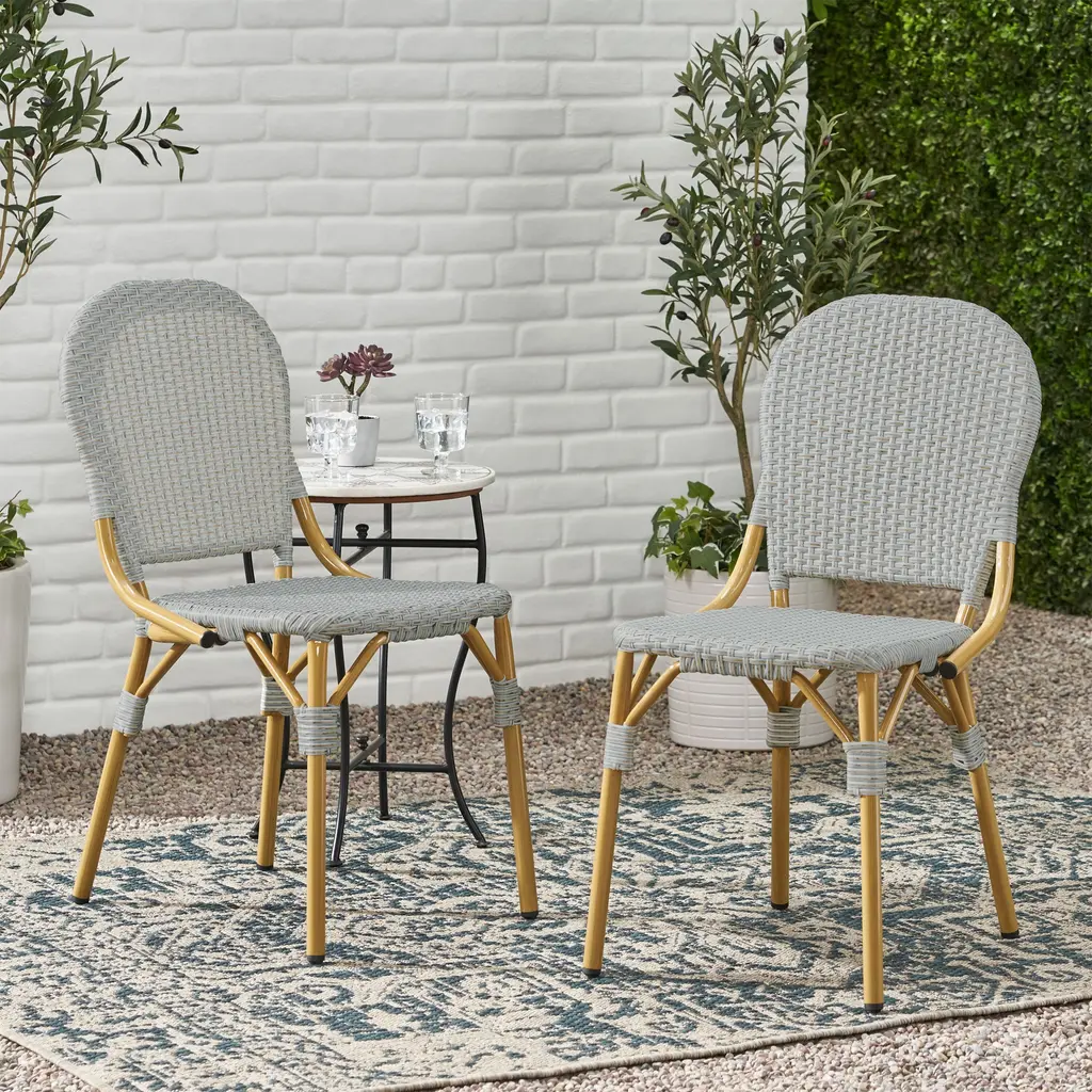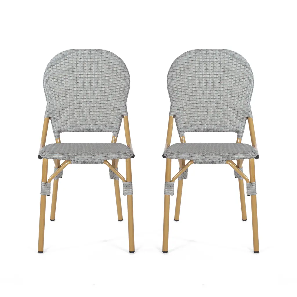 Roomfitters Outdoor Pe Rattan And Aluminum French Bistro Armless Chairs, Set Of 2, Bamboo Finish With Gray Woven Design - Gray