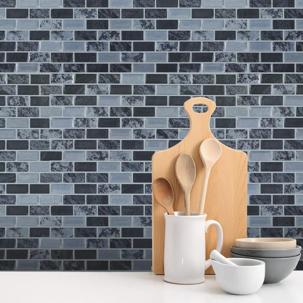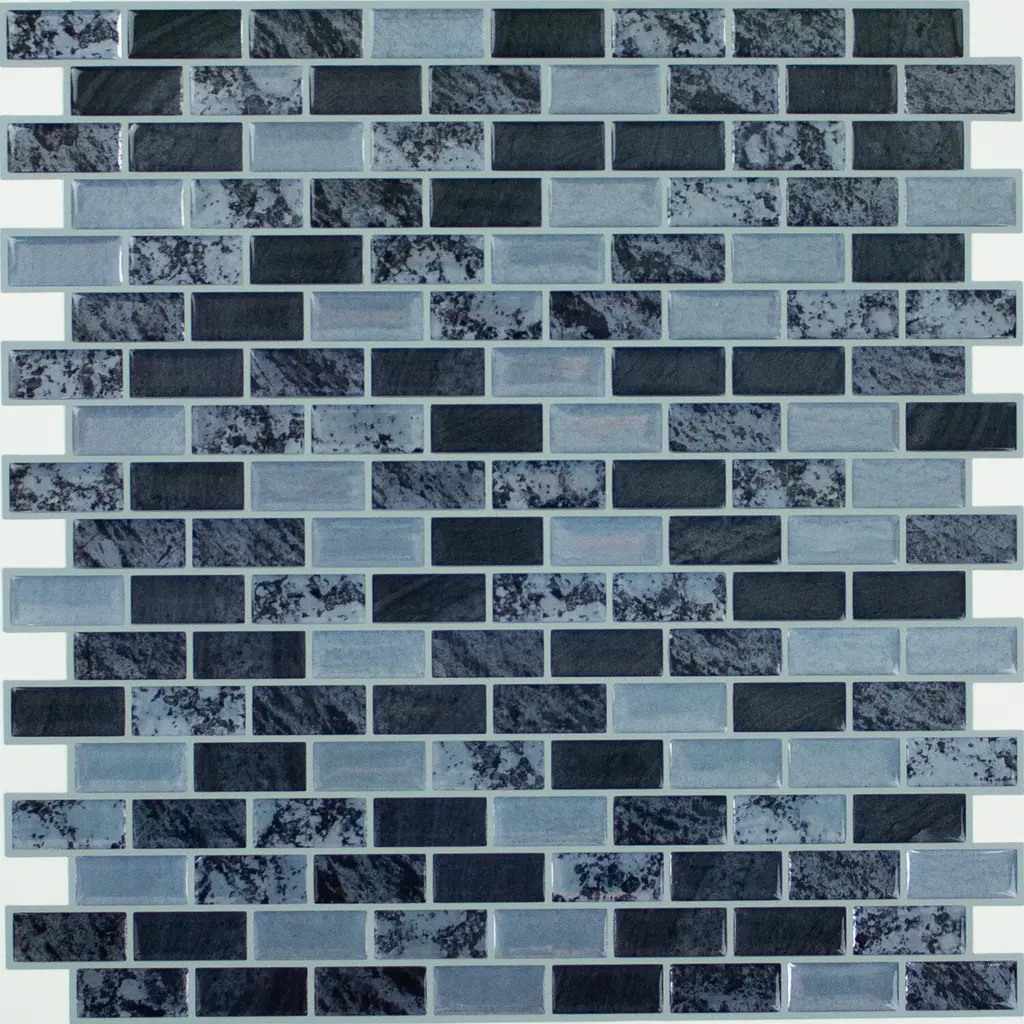 Roommates Black & Grey Traditional Marble Tile Peel And Stick Backsplash - Glossy - Multi-Color