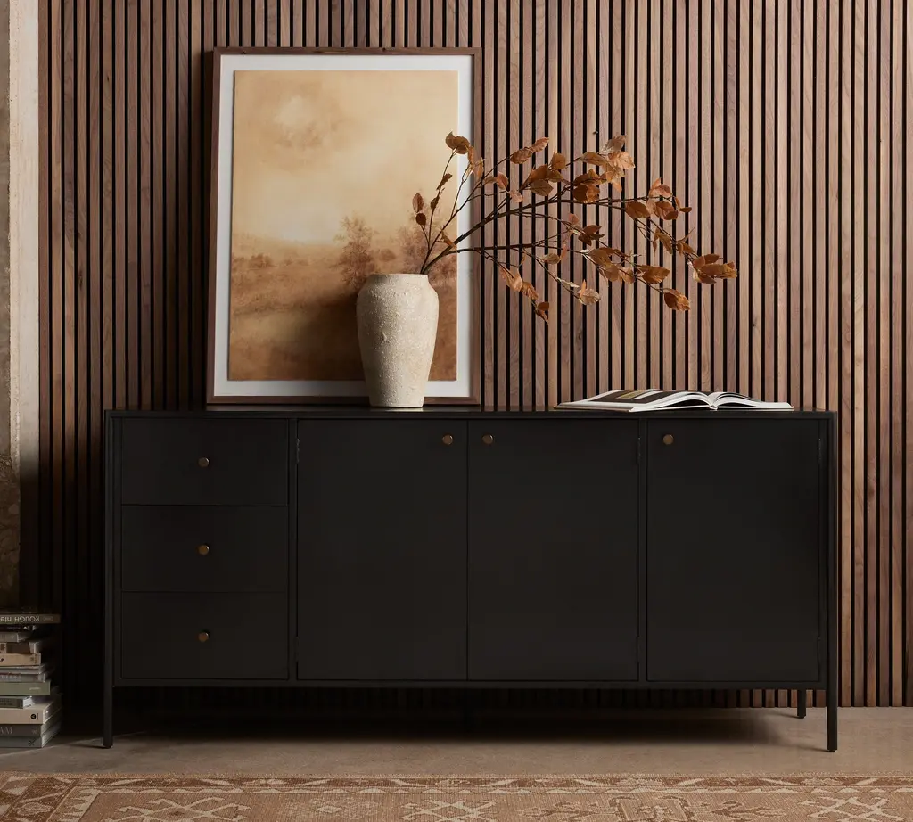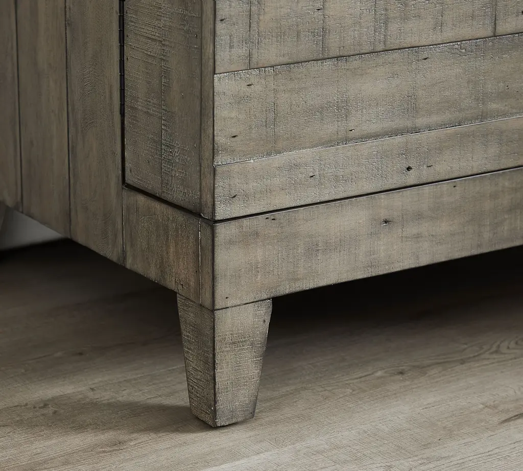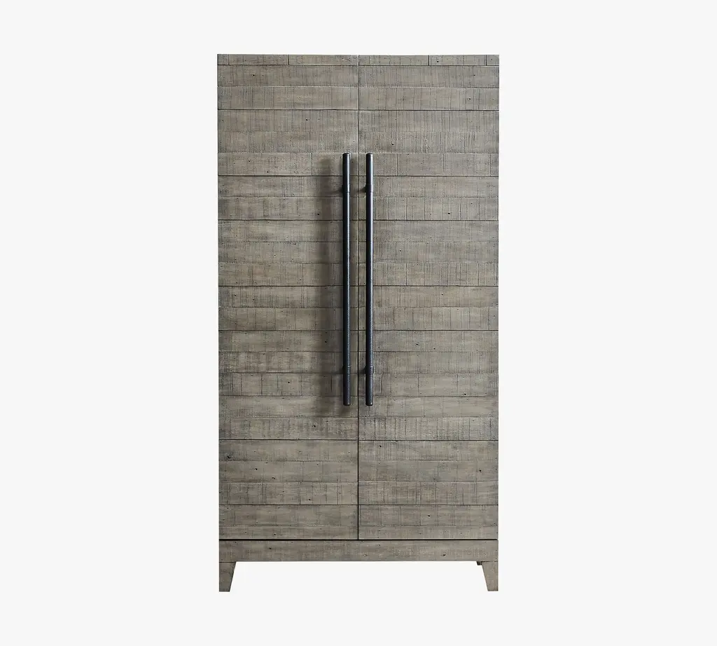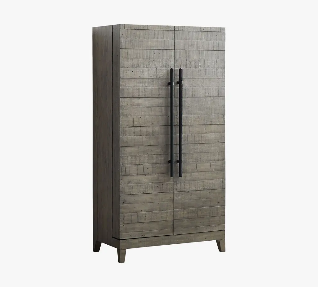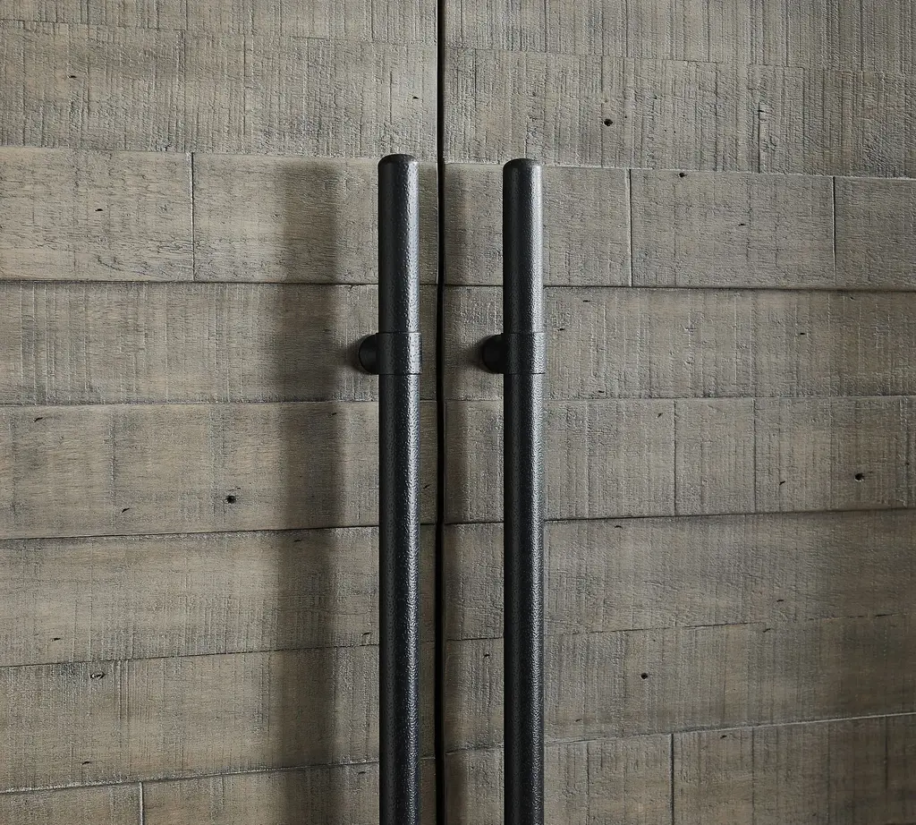 Raise the bar with this statement liquor cabinet – the perfect piece for wine lovers and cocktail connoisseurs. Crafted of pine, it’s designed with piano-hinged doors that open to reveal stem holders, a gridded wine rack, and ambient lighting that shuts off when the doors are closed.