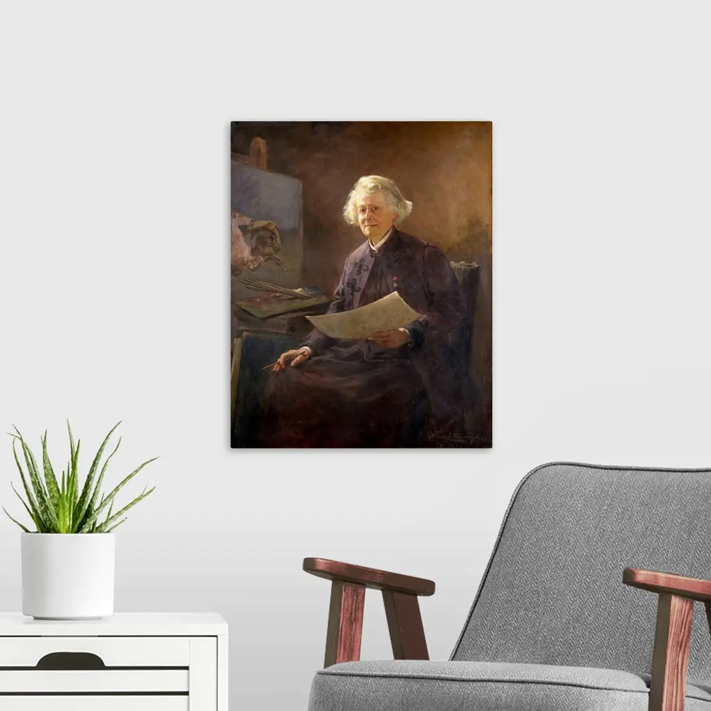 Having studied at the Academie Julian intermittently from 1880 until 1888 and worked as a portraitist in Boston, Klumpke returned to France in 1898 to execute a portrait of Rosa Bonheur (1822-1899), the French animalier whom she had long admired. Shown at her easel, Bonheur wears on her jacket her medal of the Order of the Legion of Honor. The two women became companions at chateau de By, Bonheur's home near Fontainebleau. Upon Bonheur's death, Klumpke inherited her residence and studio and dedicated herself to promoting Bonheur's legacy.