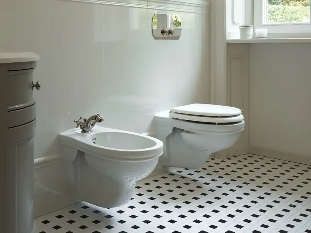 Rose Wall-Hung W.C. pan. Classic lines and 1950s inspiration for a wall-hung w.c. pan in fine white porcelain, which combines bon ton taste with functionality in a perfect mixture. It can be coordinated with a wide collection of seats of different materials and colours.