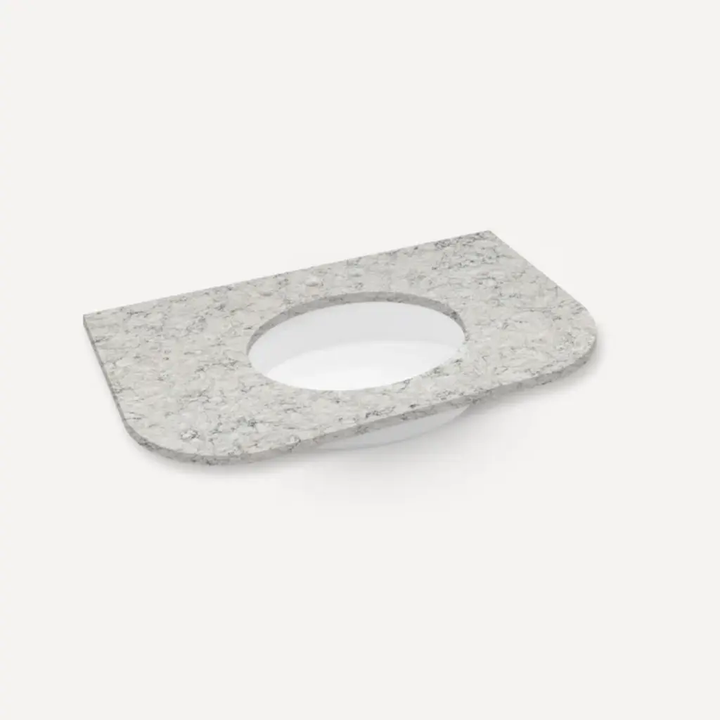 This elegant vanity features a refined quartz stone top and it combines beauty with practicality, offering a surface that's as functional as it is stylish. The vanity's sleek lines and ample storage make it a perfect fit for both contemporary and traditional settings. Its compact form is ideal for maximizing space, providing a touch of luxury without compromising on functionality.