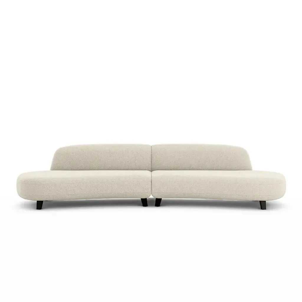 The 6-seater sofa Rosebury designed by Emmanuel Gallina, exclusively for AM.PM. A slightly curved back for a soft, rounded sofa. With the Rosebury sofa, Emmanuel Gallina revisits a 1930s classic. A piece with a strong identity, the true star of the living room. Sober and elegant, this sofa with its rounded lines offers a generous volume that ensures an enveloping and comfortable seat.