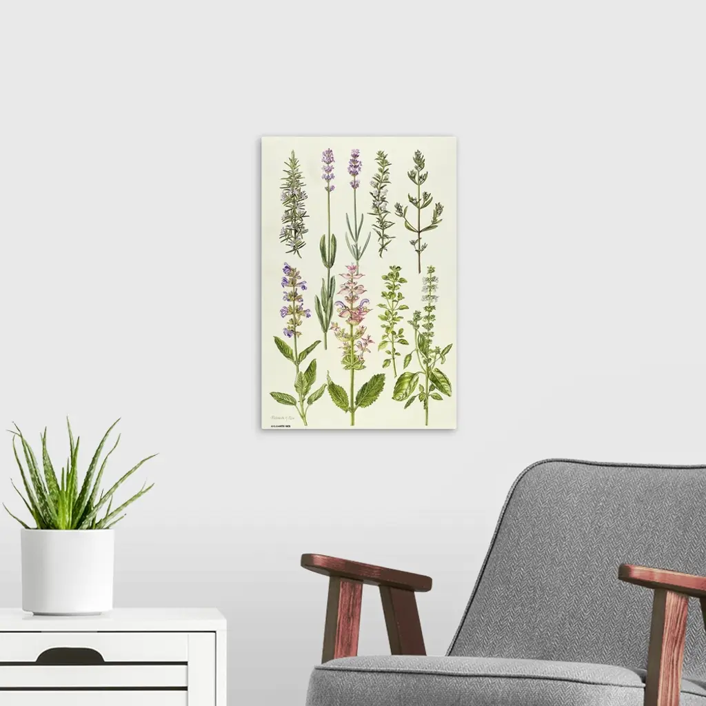 ERI64949 Rosemary and other herbs (w/c) by Rice, Elizabeth (Contemporary Artist); watercolour; Private Collection; English, in copyright