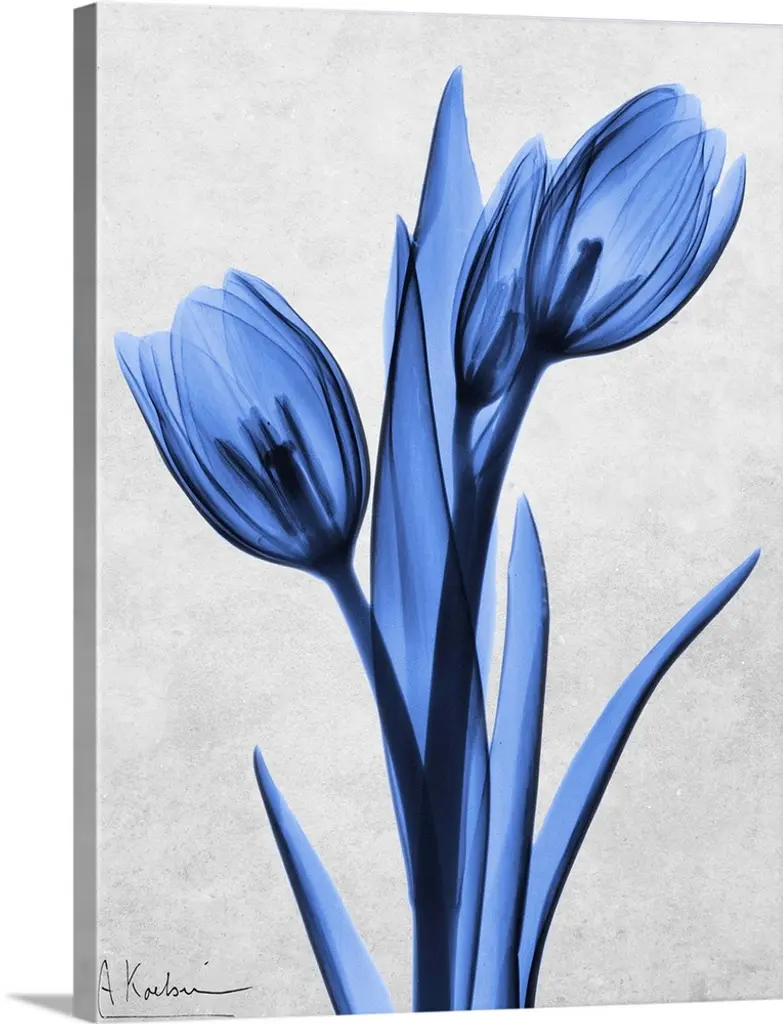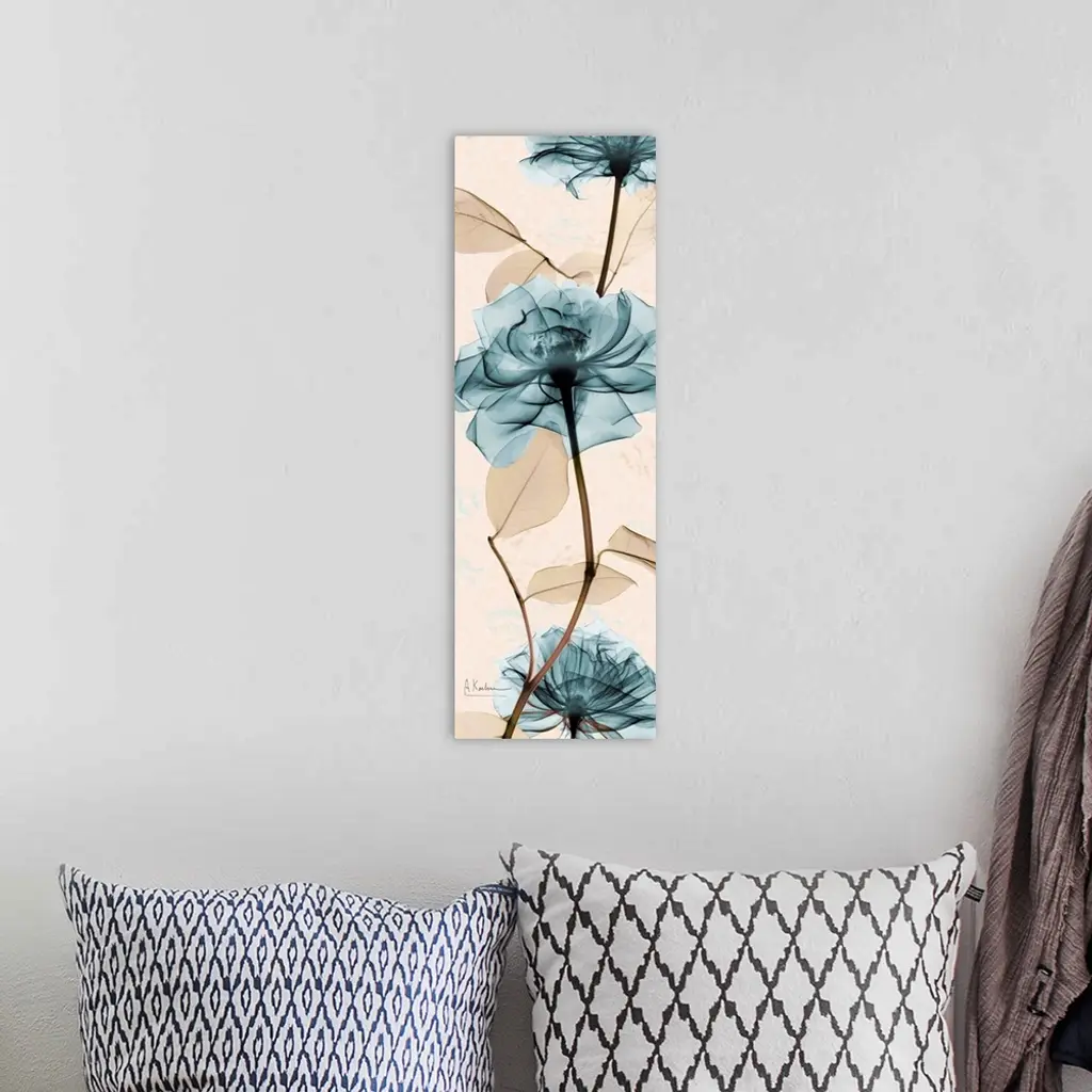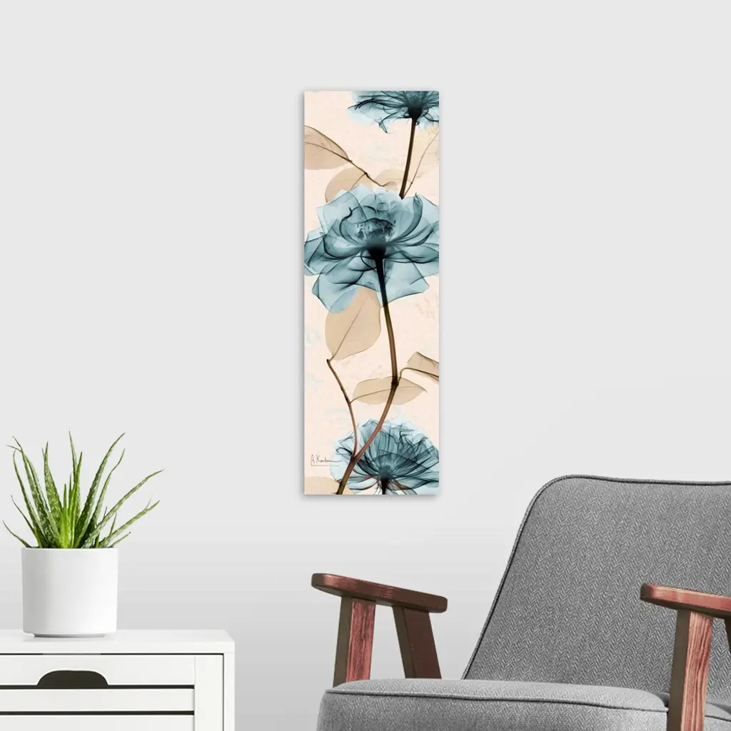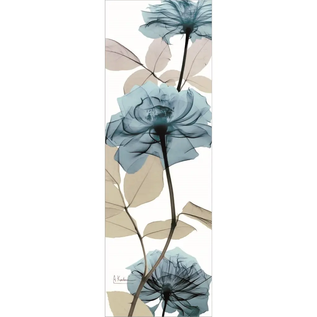 Vertical x-ray photograph of three roses on an earth toned background.