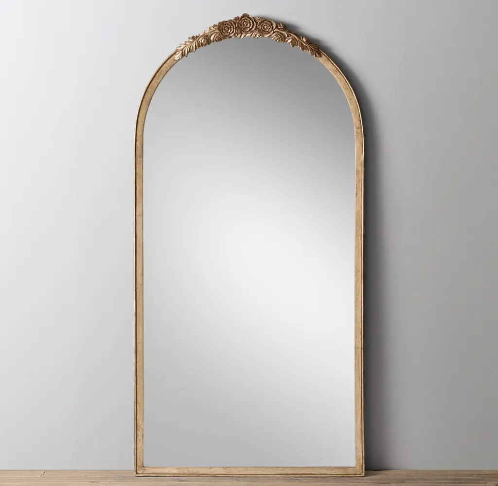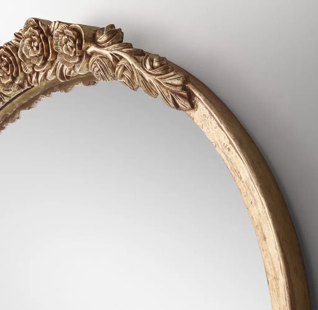 Taking inspiration from French Art Deco design, our mirror highlights a spray of ornate, hand-carved cabbage roses atop a hardwood frame. An aged finish lends it the character of an antique. SHOP THE ENTIRE COLLECTION