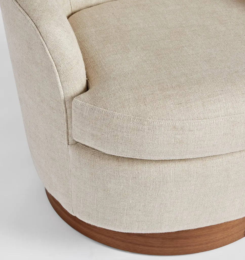 Our Roslyn Swivel Chair is elegant with a soft, comfortable curved back and 360-degree swivel functionality. A smaller scale seating solution, Roslyn is an ideal addition to any bedroom, reading room, or cozy living room corner. Available in several premium upholstery options.