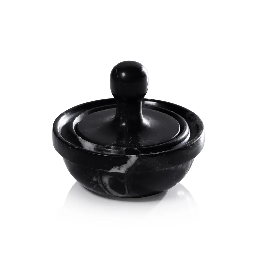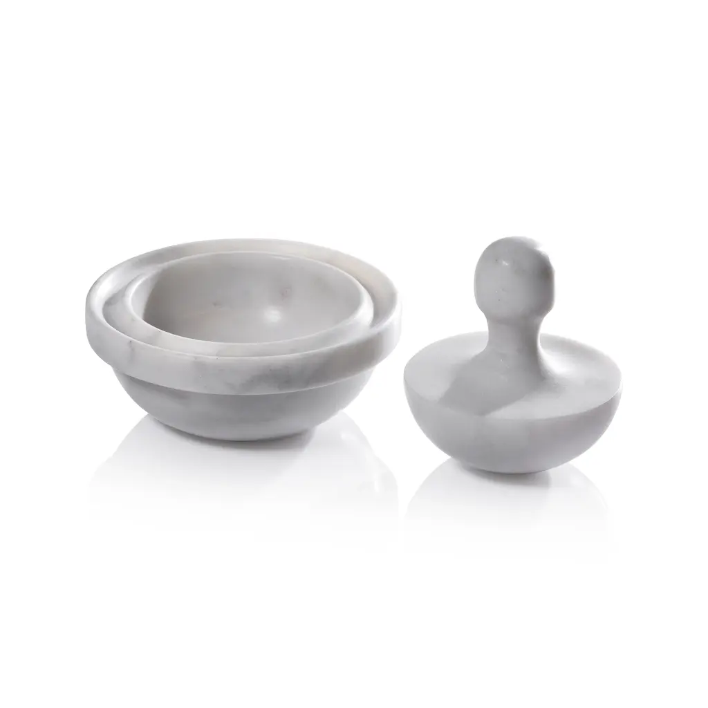 The Marble Spice Grinder is a refined take on a kitchen essential, combining functionality with sculptural elegance. Crafted from high-quality marble in a satin finish, this piece departs from the traditional mortar and pestle with its unique spinning top-inspired pestle. The wide design allows for effortless grinding while also serving as a lid for the mortar, creating a seamless, one-unit aesthetic. Perfect for grinding fresh spices, herbs, or seasonings, this versatile tool adds both practicality and beauty to any countertop. Features: Satin finish marble spice grinder with a sleek, contemporary design Unique spinning top-inspired pestle functions as both a grinder and a lid Designed for efficient spice grinding while maintaining a cohesive look A stylish and functional addition to any kitchen or dining setup Variations in veining and color