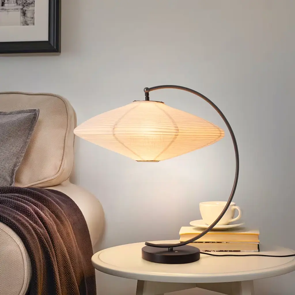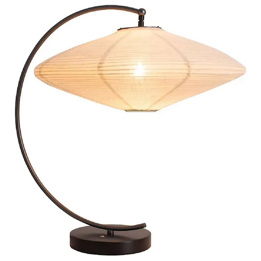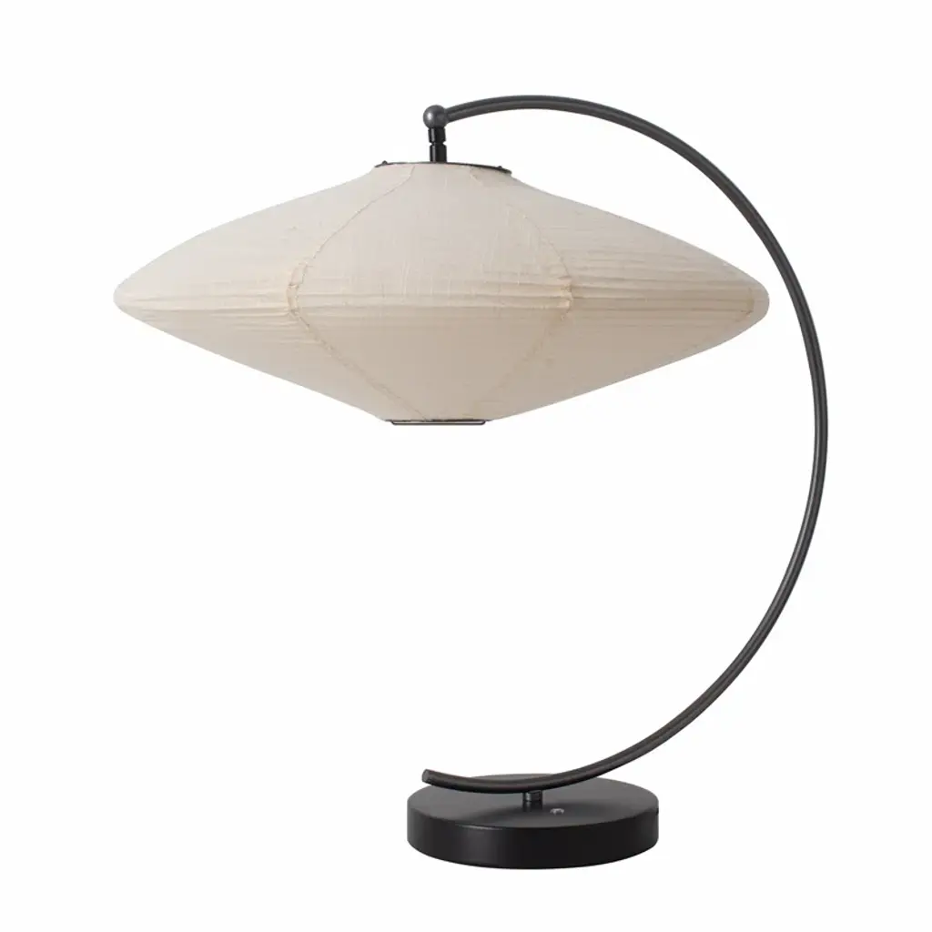 Roswell Table Lamp - Matte Black & Matte Black Finish, Handcrafted Shinpuru-Sa Linen-Cotton Shade, Black Marble Base
