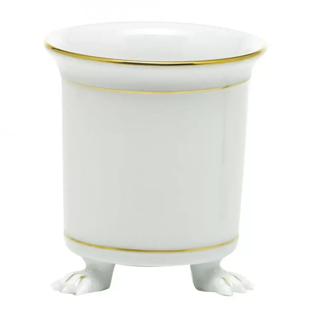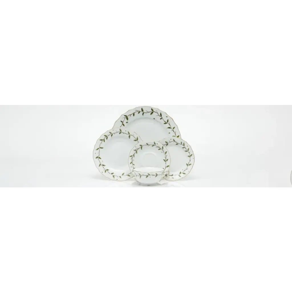 Released from the songs of the Rothschild birds, the garden turns in on itself and becomes a place of quiet reflection and beauty. Even the insects have briefly moved on and only softly falling leaves provide the occasional stirring. What remains are the essence of the famous story with the green leaves and the brown of the vine preserving the spirit of Rothschild Bird. Hand painted in Hungary. Now the biggest porcelain manufactory in Europe, Herend was founded in 1826 to produce earthenware in the small Hungarian village for which it was named. At the time, Hungary was flooded with low-cost pottery, but in 1839, Mor Fischer became the Manufactory’s new owner and he decided to focus on producing dinnerware replacement pieces for Europe’s royal families to complement their valuable porcelain patterns from Germany and the Far East. As his client base grew, Fischer commissioned his artists to begin designing dinnerware patterns of their own. Queen Victoria’s 1851 purchase of a large set for Windsor Castle was a milestone, setting the stage for aristocrats throughout Europe to clamor for Herend in their estates. In the 1850s, Herend added meticulously-crafted figurines to its creations. Herend’s trademark fishnet pattern, which is widely recognized and prized as Herend’s signature design, started in 1858 when an artist who was intrigued with a Chinese plate’s fish scale design painted it onto a rooster figurine to imitate feathers.