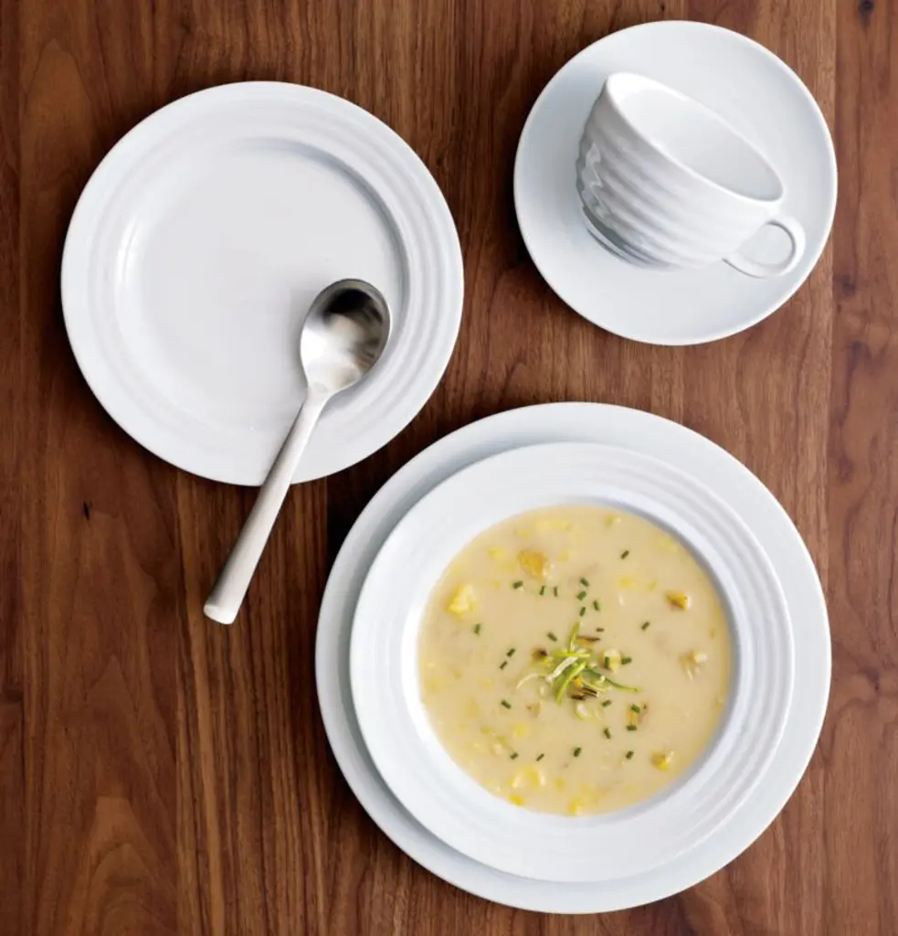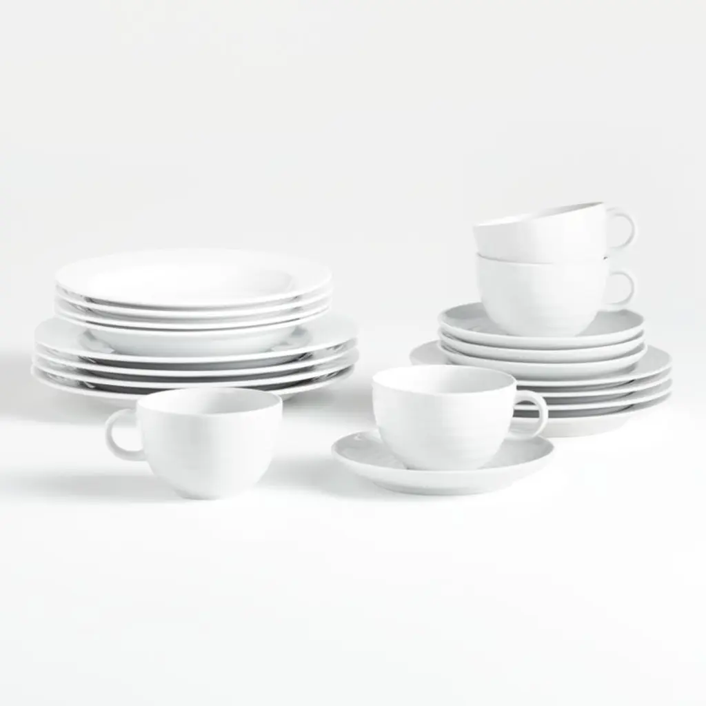 Designed by Martin Hunt of Queensberry Hunt, Roulette dinnerware has been a top-selling Crate and Barrel favorite since the pattern was introduced in 1992. Crafted of durable, pure white porcelain, Roulette features subtle concentric circles that create an eye-catching rippled effect. Mix and match with our Roulette Blue Band dinnerware.