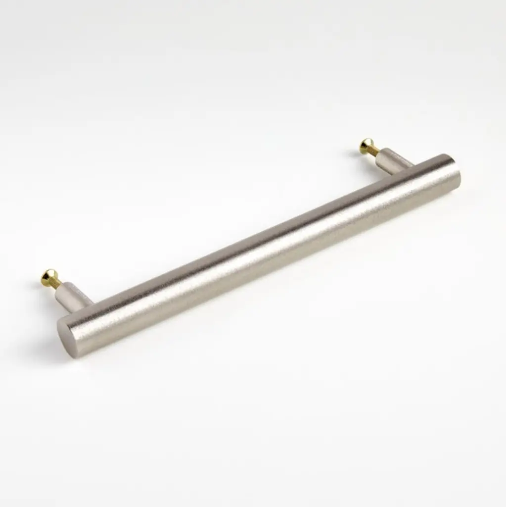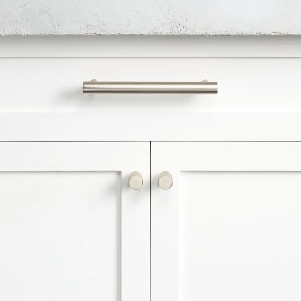 Whether you are doing a full remodel or just want a quick update, our striking handles instantly breath new life into your kitchen or bathroom cabinets. The bar pull's striking cylinder shape and striking brushed nickel finish provide an instant update to painted or wood cabinet doors or drawers. The easily installed handle mounts horizontally or vertically.
