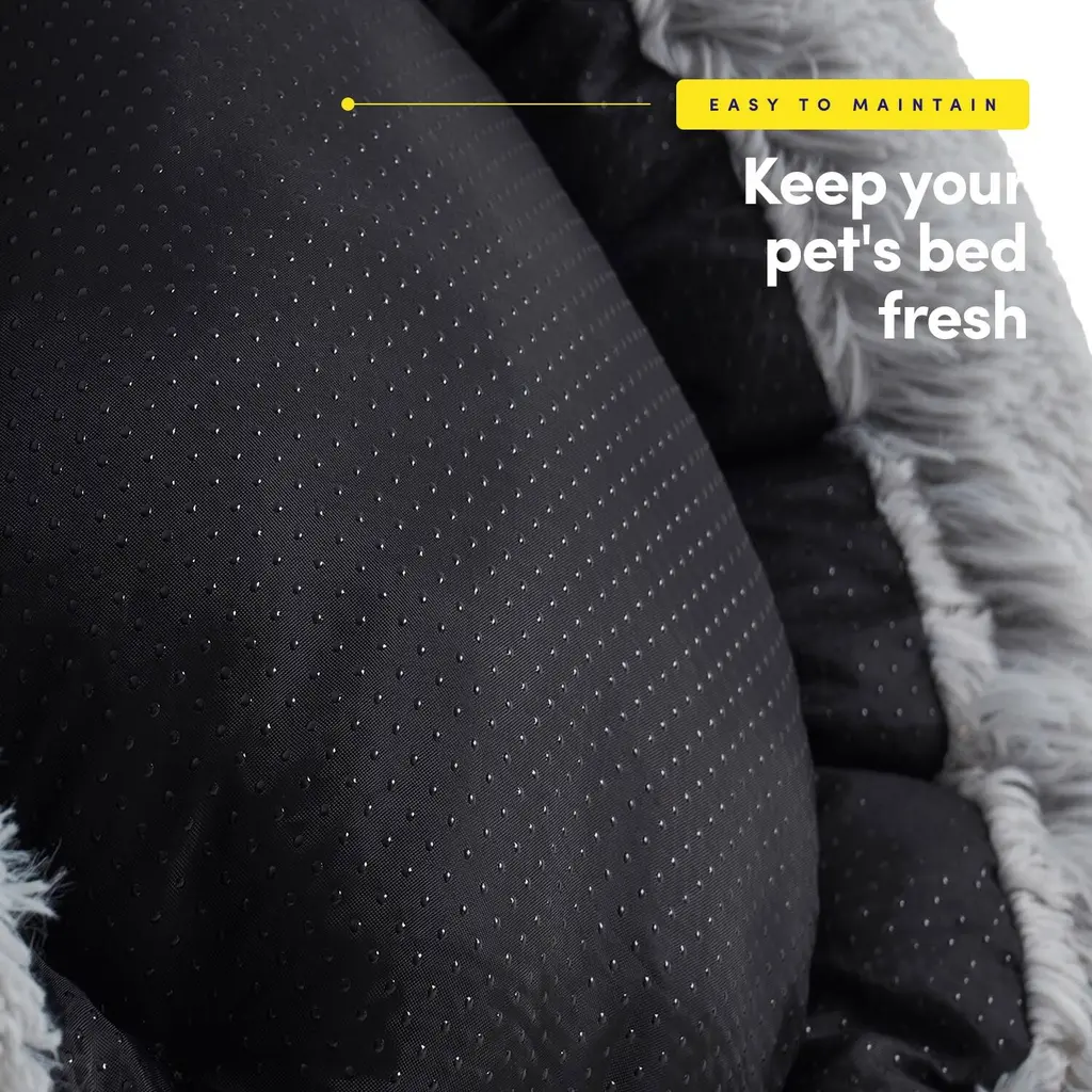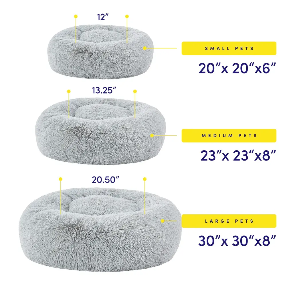 Indulge your furry friend in the lap of luxury with our one of a kind Sweet Home Collection Faux Fur Shaggy Round Calming Donut Pet Bed! Available in 3 sizes, 20", 23" and 30" wide, this stylish and comfortable bed is perfect for both dogs and cats. Crafted with a soothing donut shape, it provides a sense of security and warmth for your pet also giving optical support for their head and neck. The bottom features a waterproof, non-slip dot fabric, ensuring strong stability and preventing slips or spills. However, please note that this bed is not suitable for pets with excessive teething or destructive chewing behavior. For your convenience, the bed is machine washable, ensuring easy care and maintenance. Treat your pet to the ultimate relaxation experience with our plush and inviting pet bed!