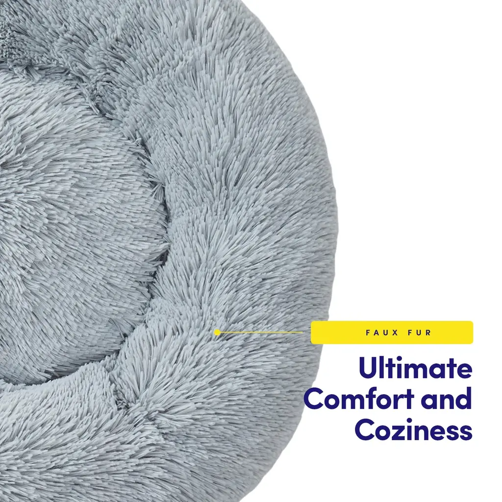 Round Calming Soft Warm Shaggy Plush Faux Fur Donut Pet Dog Cat Sleeping Bed - Silver - 20"